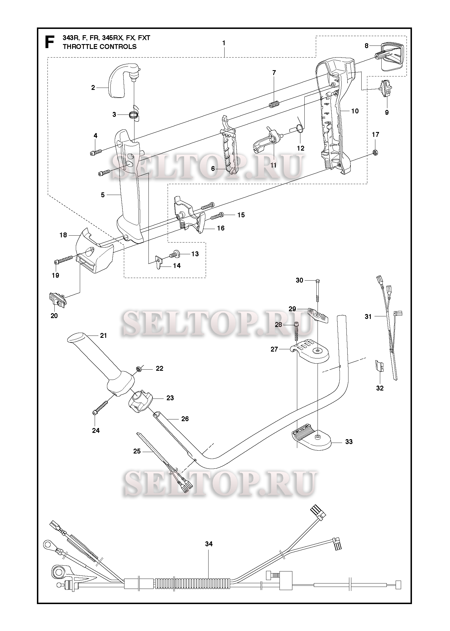Управление дросселем (вариант 2) для триммера Husqvarna 343 FRM (c 2008-05)