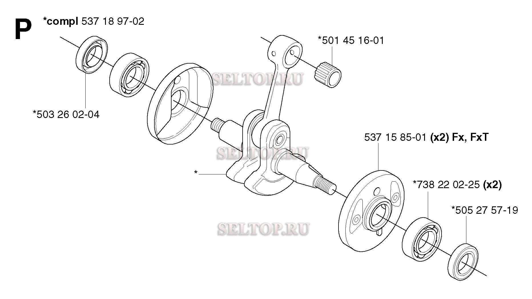 Коленвал для триммера Husqvarna 343 R (c 2003-05), взрыв-схема:
