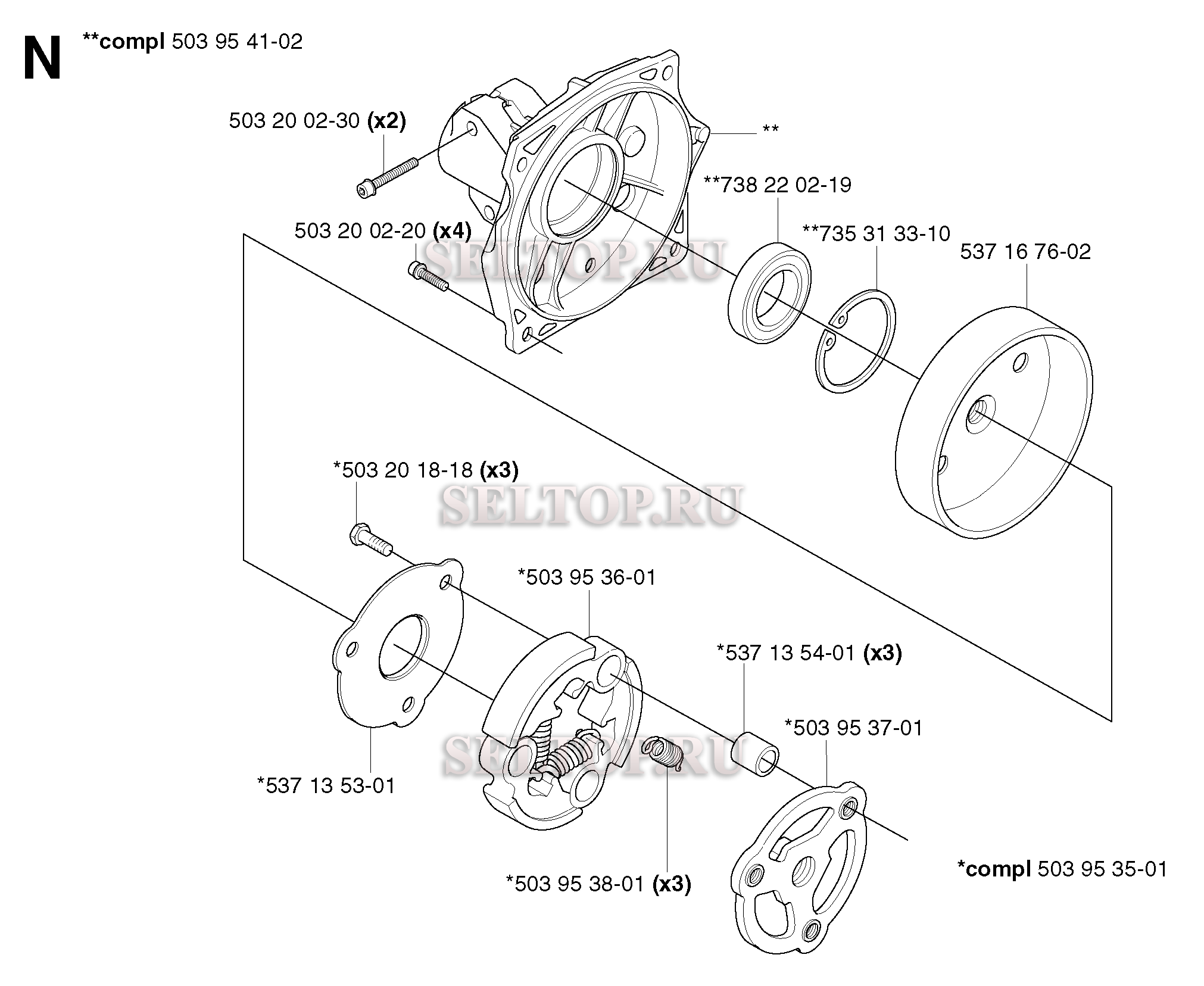 Сцепление для триммера Husqvarna 343 R (c 2003-05), взрыв-схема: