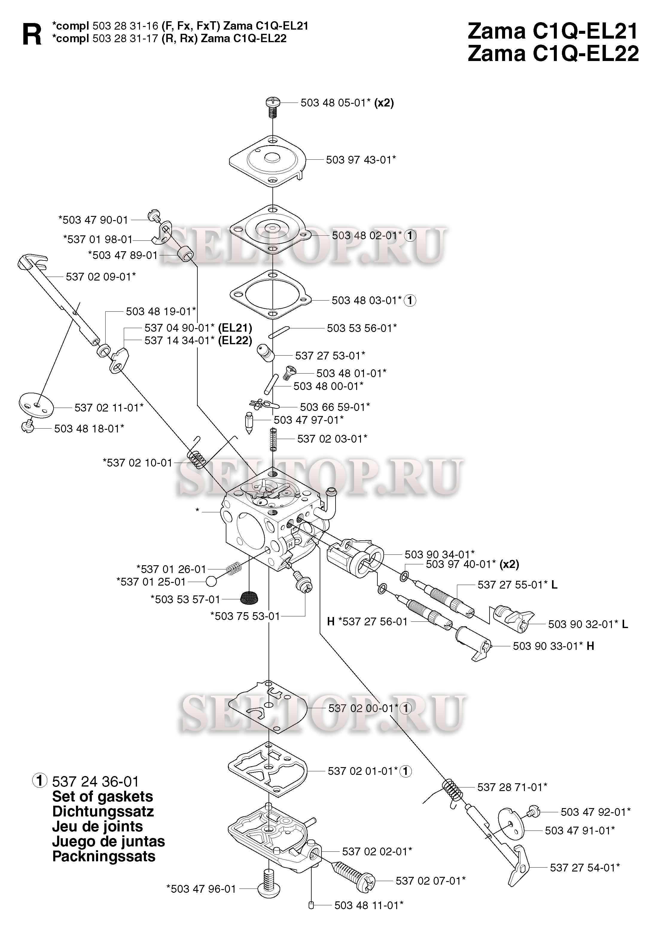 Запчасти карбюратора для триммера Husqvarna 343 R (c 2003-05), взрыв-схема: