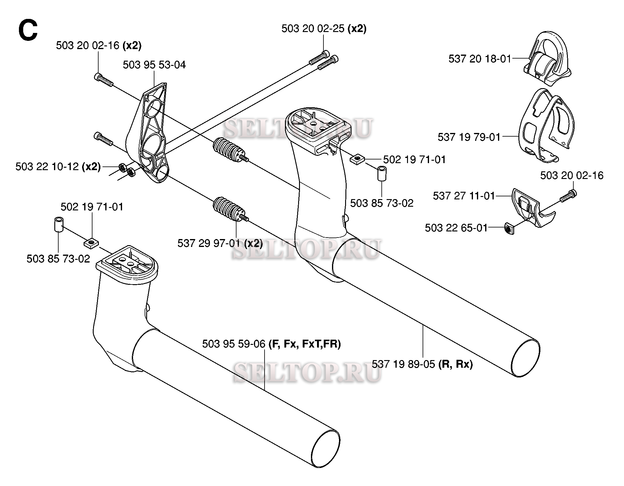 Ведущий вал (вариант 2) для триммера Husqvarna 343 R (c 2006-10), взрыв-схема: