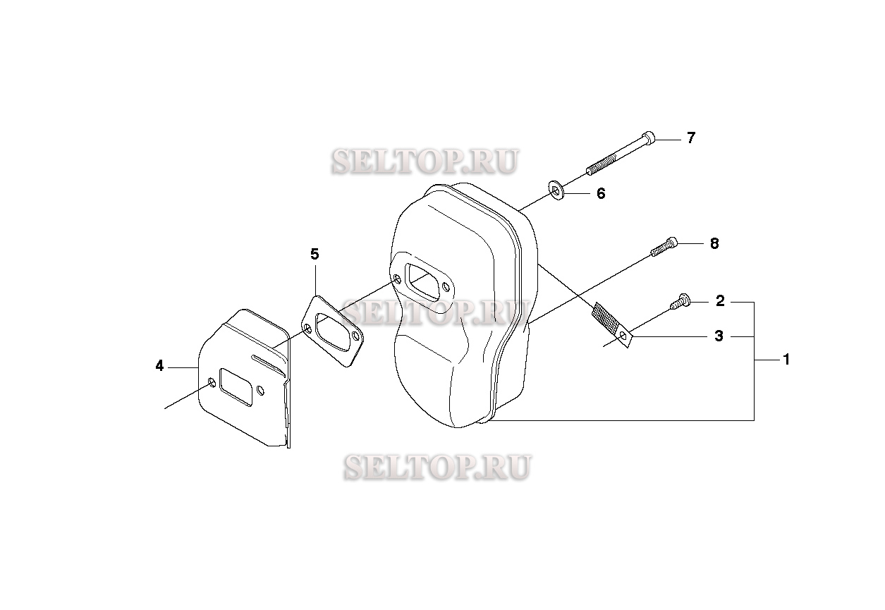 Глушитель для триммера Husqvarna 343 R (c 2010-09), взрыв-схема: