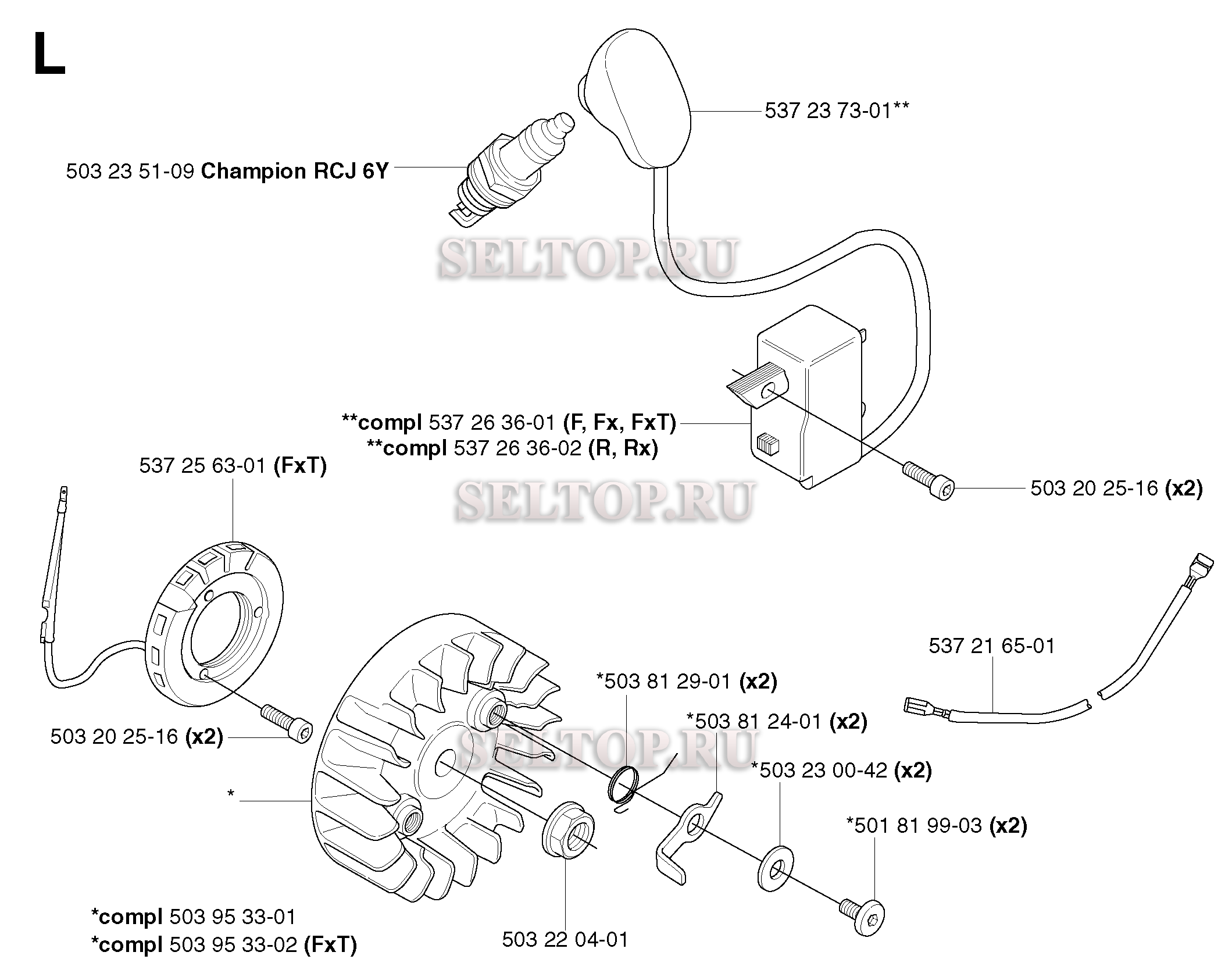 Зажигание для триммера Husqvarna 345 FX (c 2003-05), взрыв-схема: