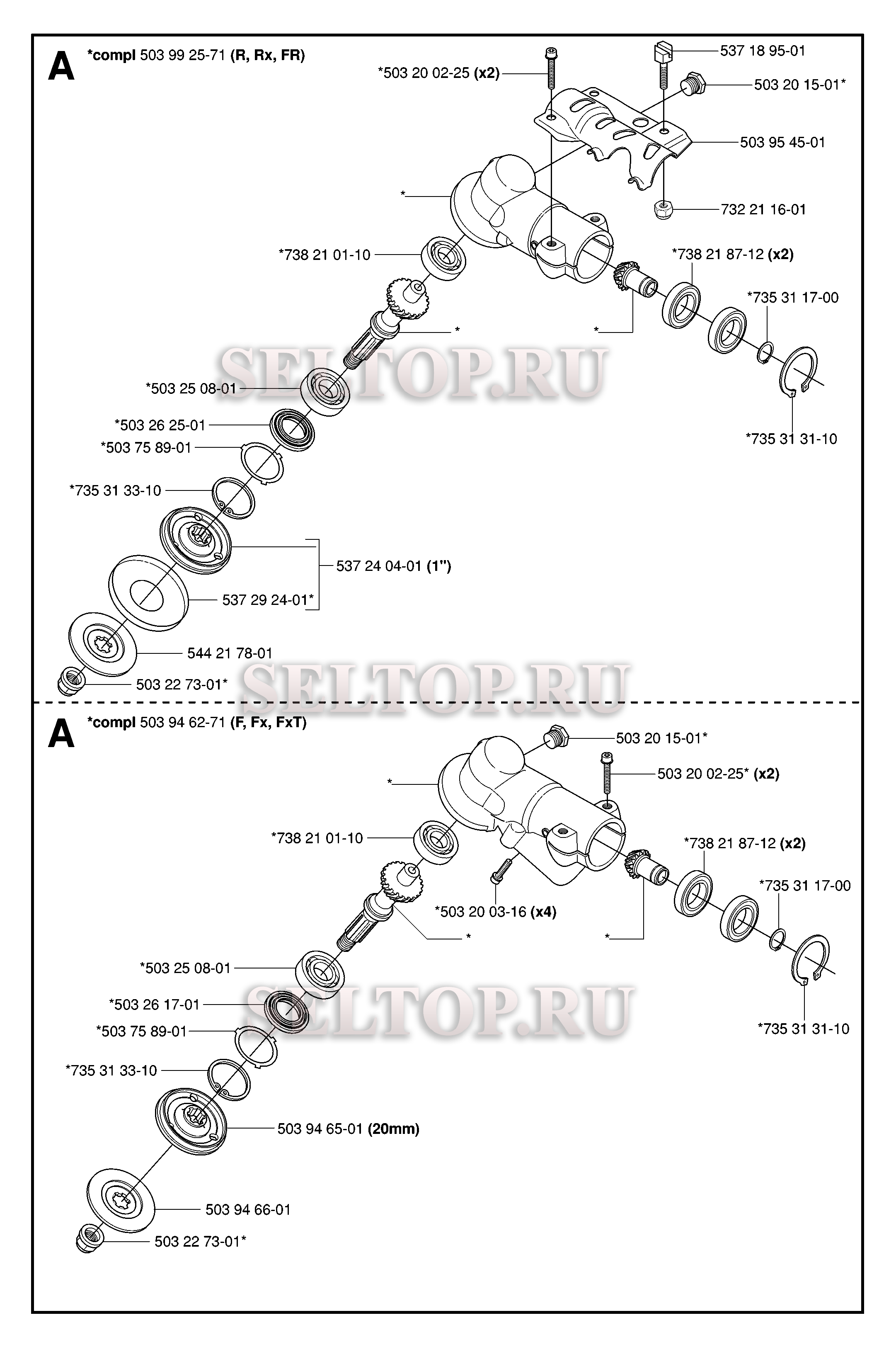 Редуктор для триммера Husqvarna 345 FX (c 2006-10), взрыв-схема: