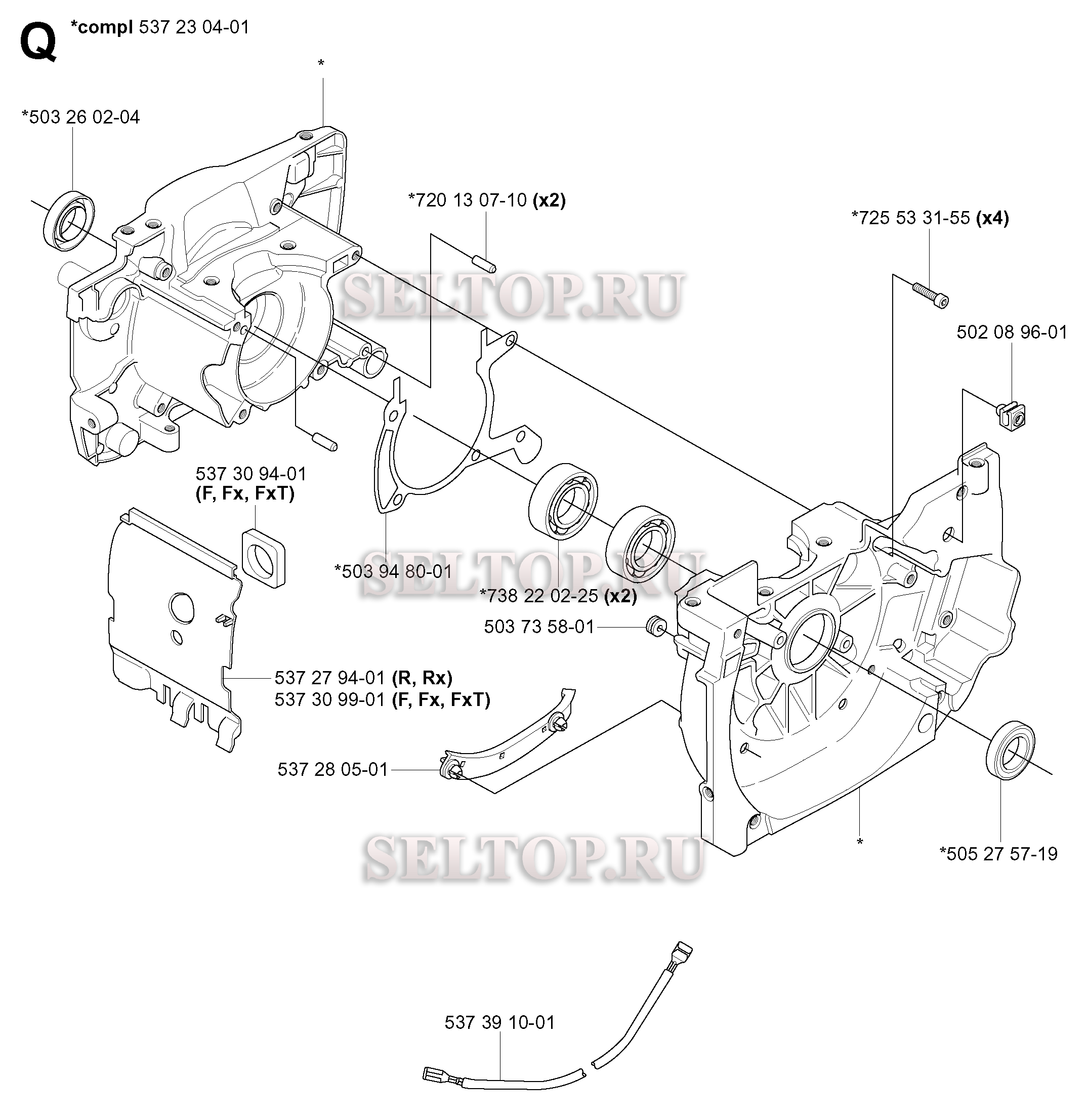 Картер для триммера Husqvarna 345 FXT (c 2004-08), взрыв-схема: