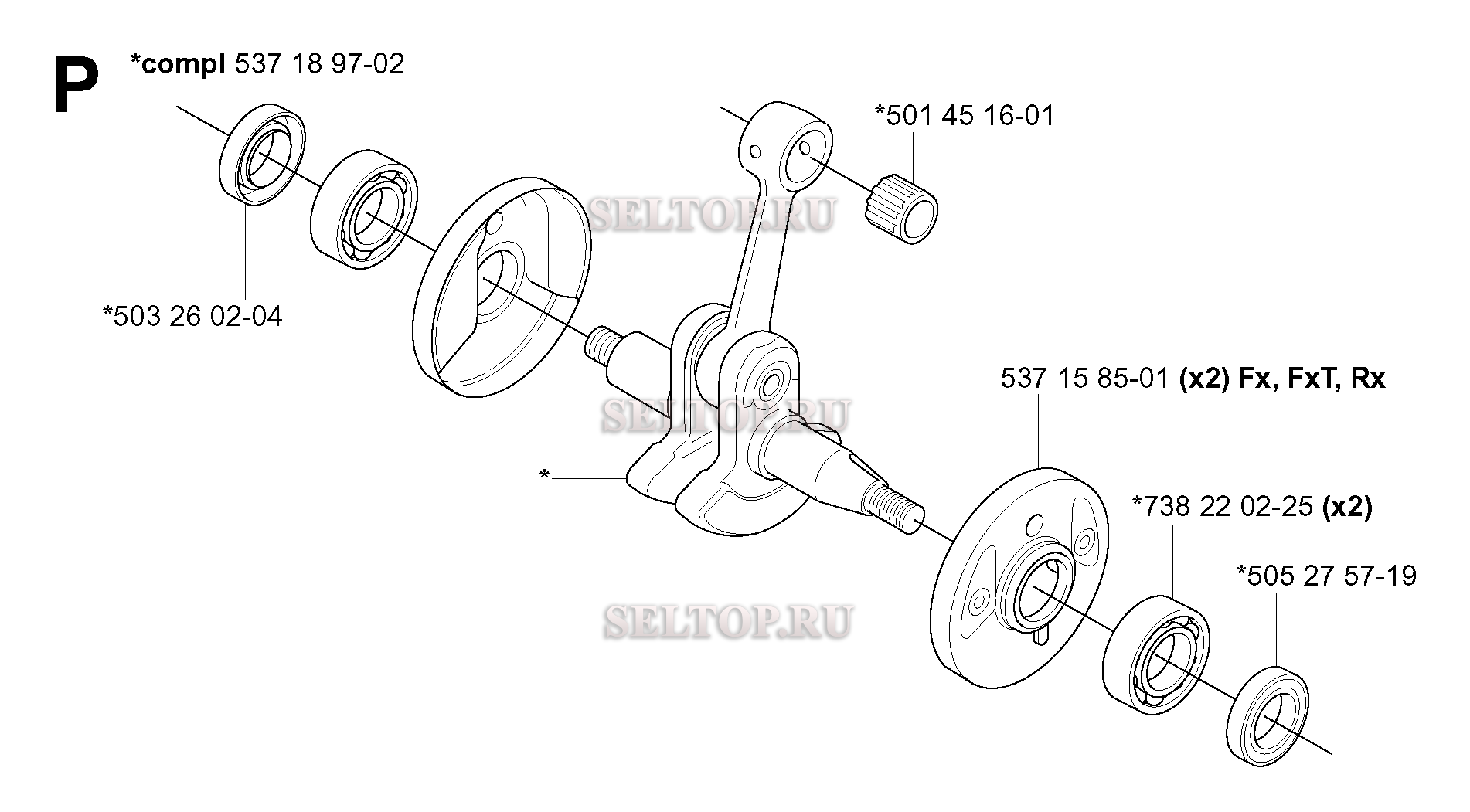 Коленвал для триммера Husqvarna 345 FXT (c 2004-08), взрыв-схема:
