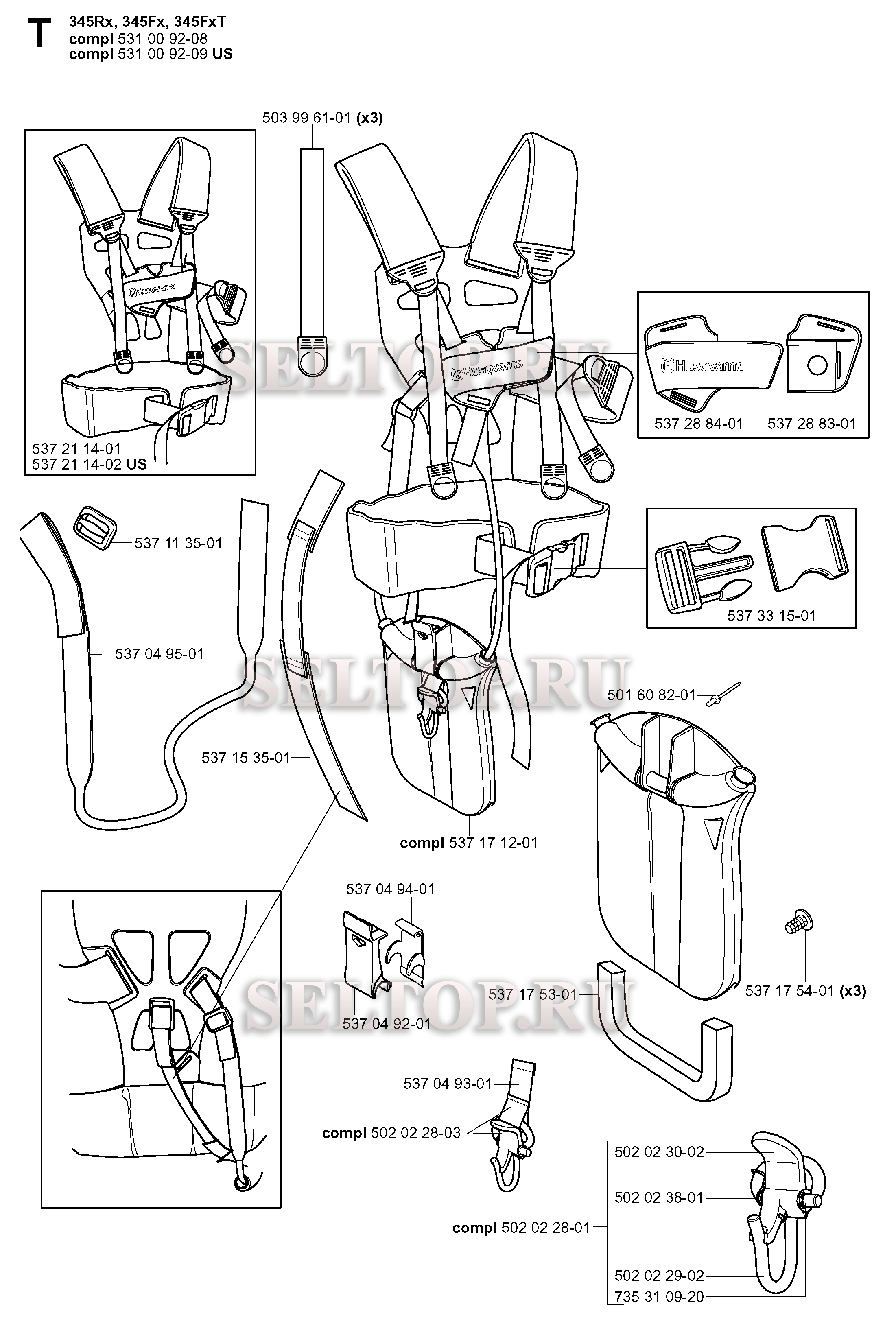 Подвесная система для триммера Husqvarna 345 FXT (c 2004-08), взрыв-схема: