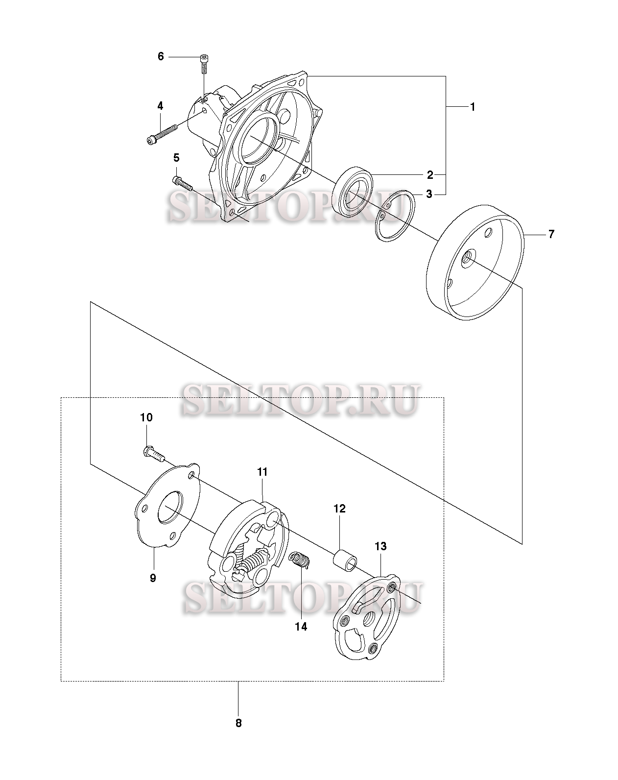 Сцепление для триммера Husqvarna 345 FXT (c 2010-09), взрыв-схема: