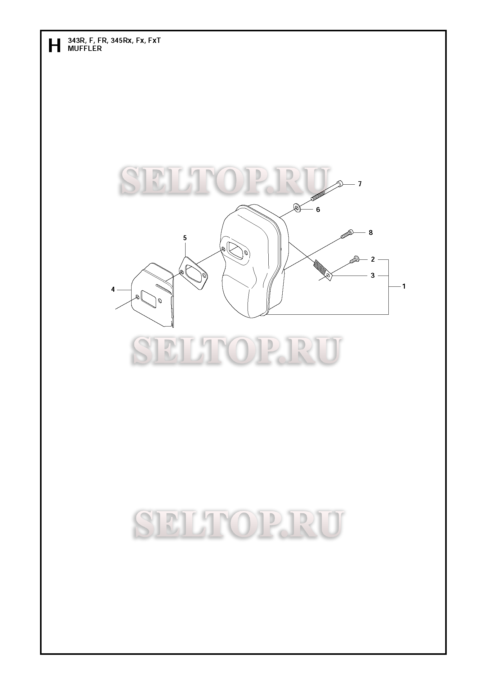 Глушитель для триммера Husqvarna 345 FXT (c 2011-02), взрыв-схема: