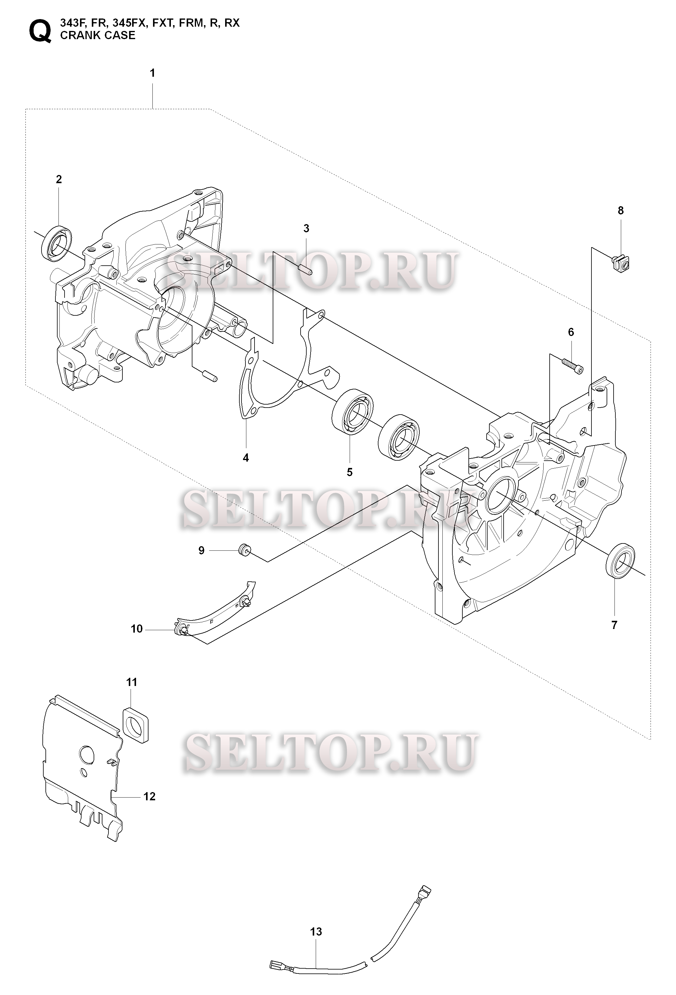 Картер для триммера Husqvarna 345 R (c 2008-05), взрыв-схема: