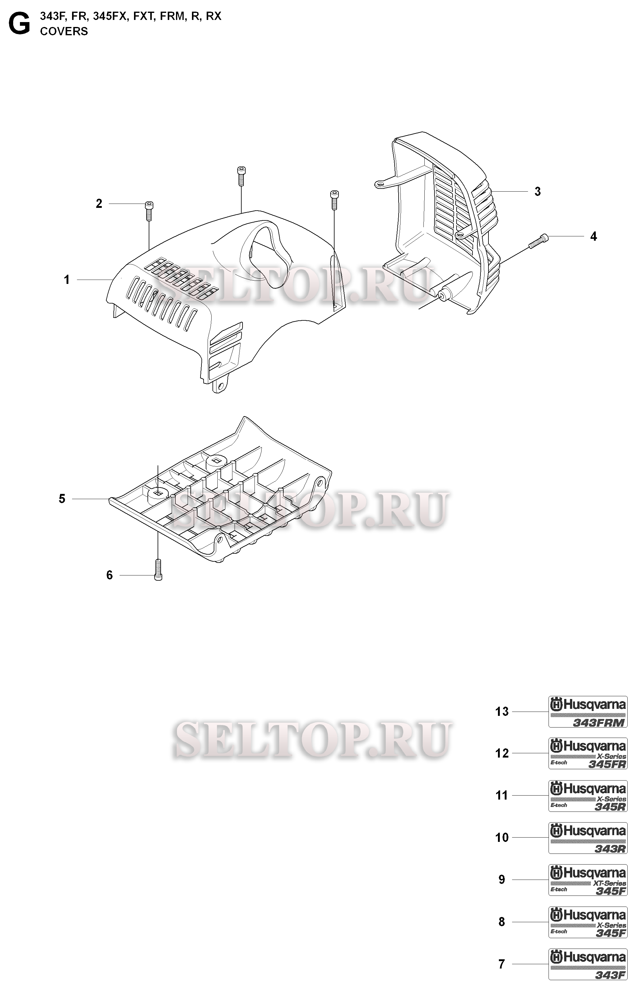 Кожух для триммера Husqvarna 345 R (c 2008-05), взрыв-схема: