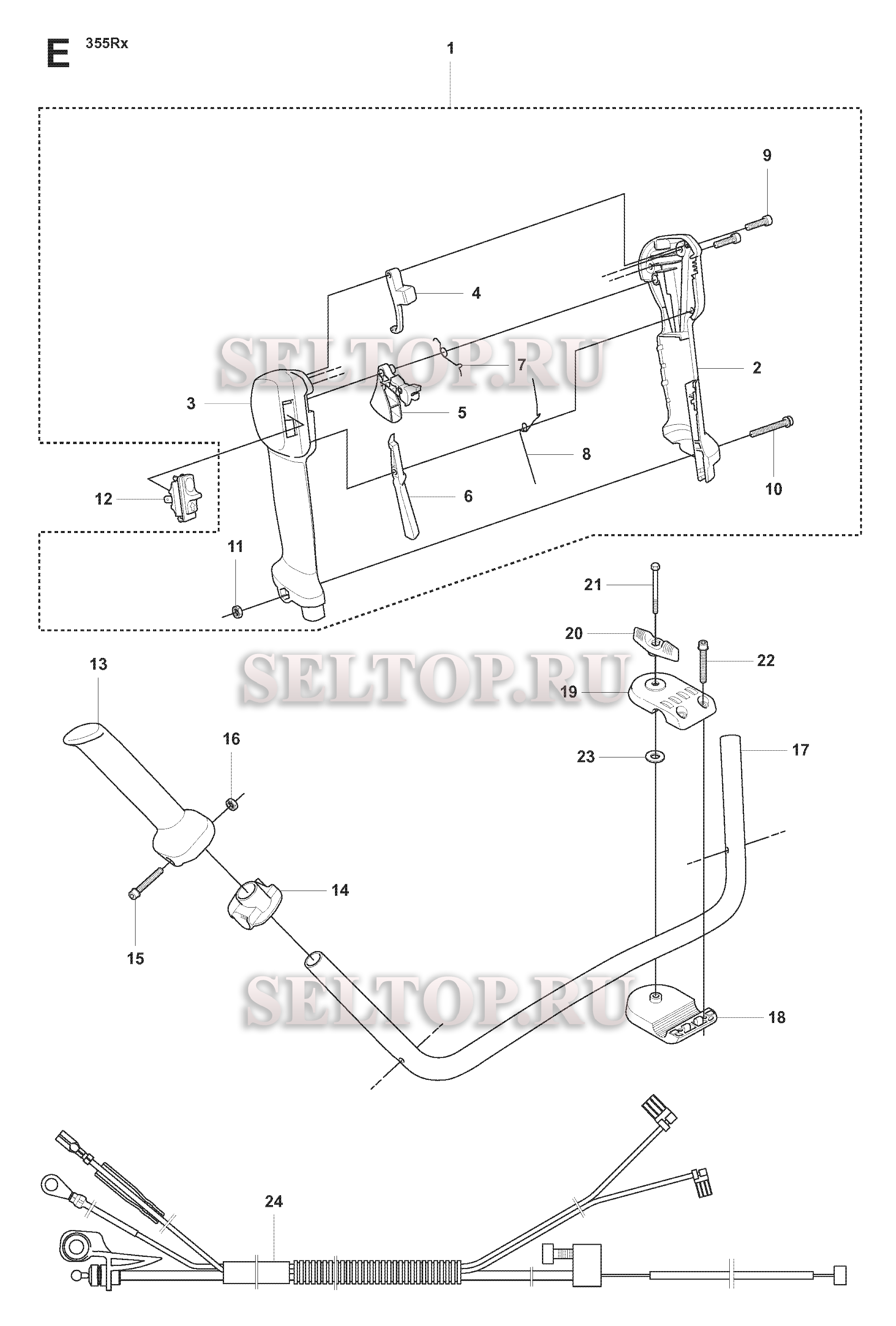 Ручка, рычаги управления для триммера Husqvarna 355 FX (c 2007-08), взрыв-схема: