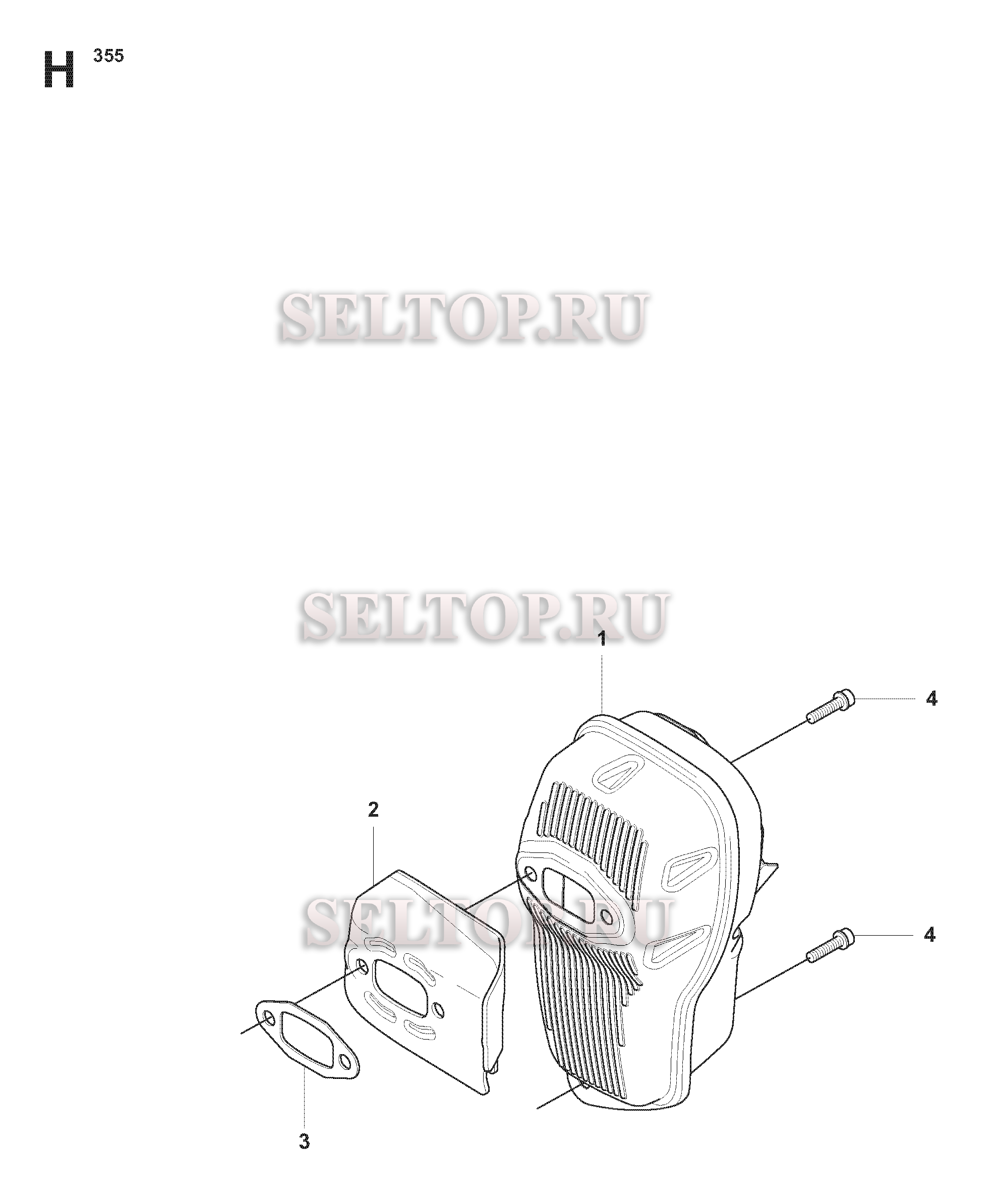 Глушитель для триммера Husqvarna 355 FX (c 2008-07), взрыв-схема: