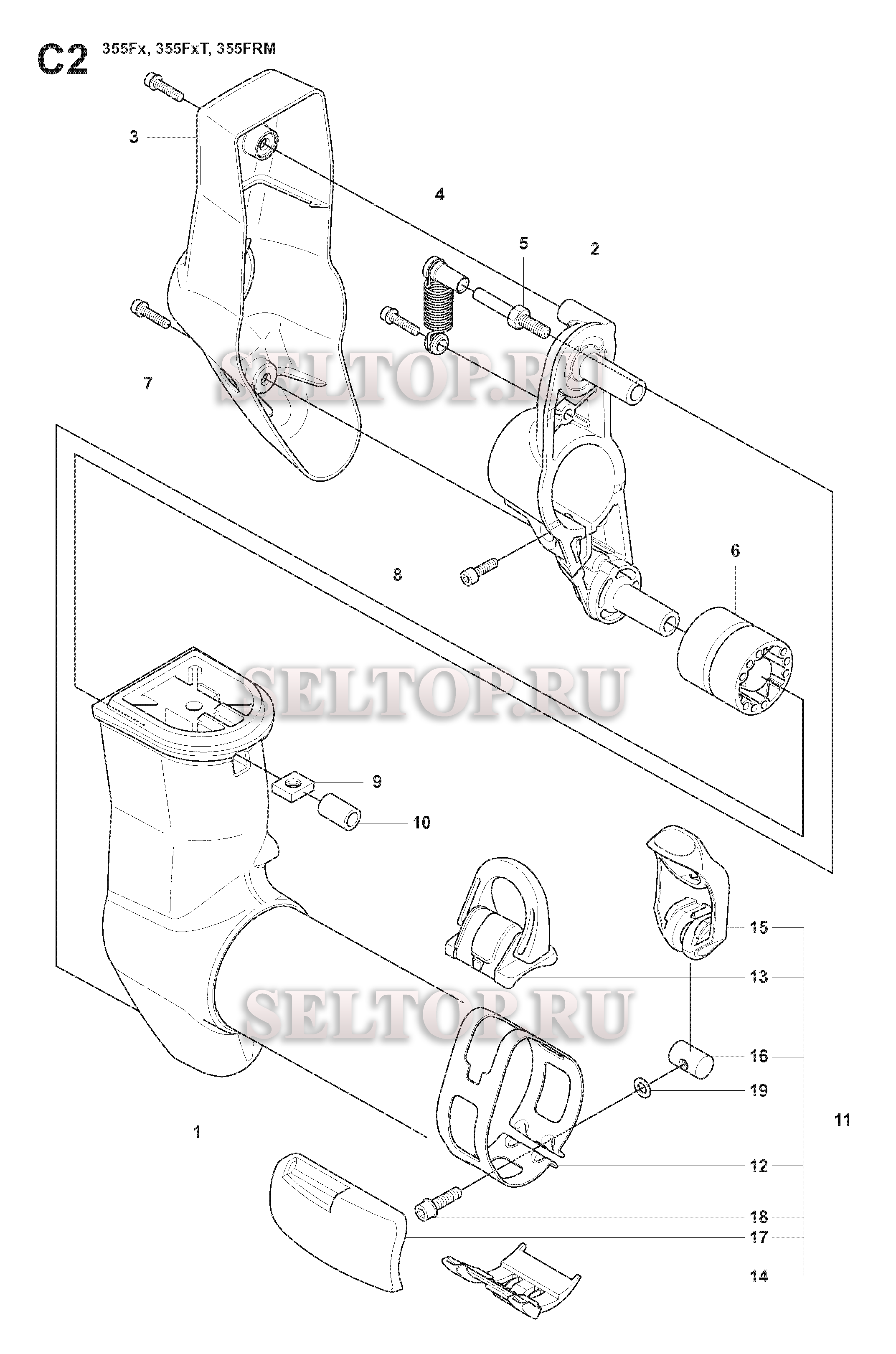 Кронштейн рукоятки для триммера Husqvarna 355 FX (c 2008-07), взрыв-схема: