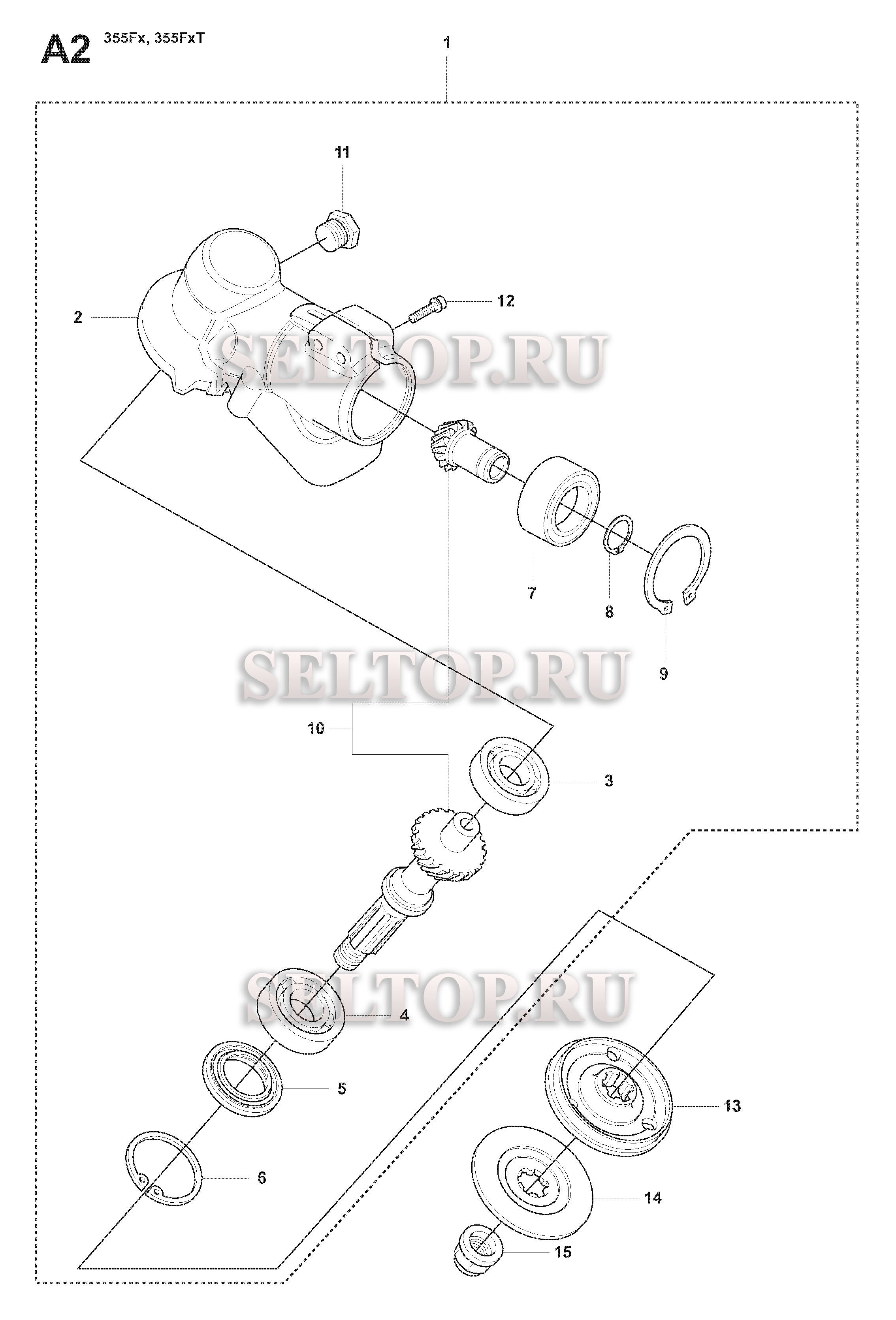 Редуктор для триммера Husqvarna 355 FX (c 2008-07), взрыв-схема: