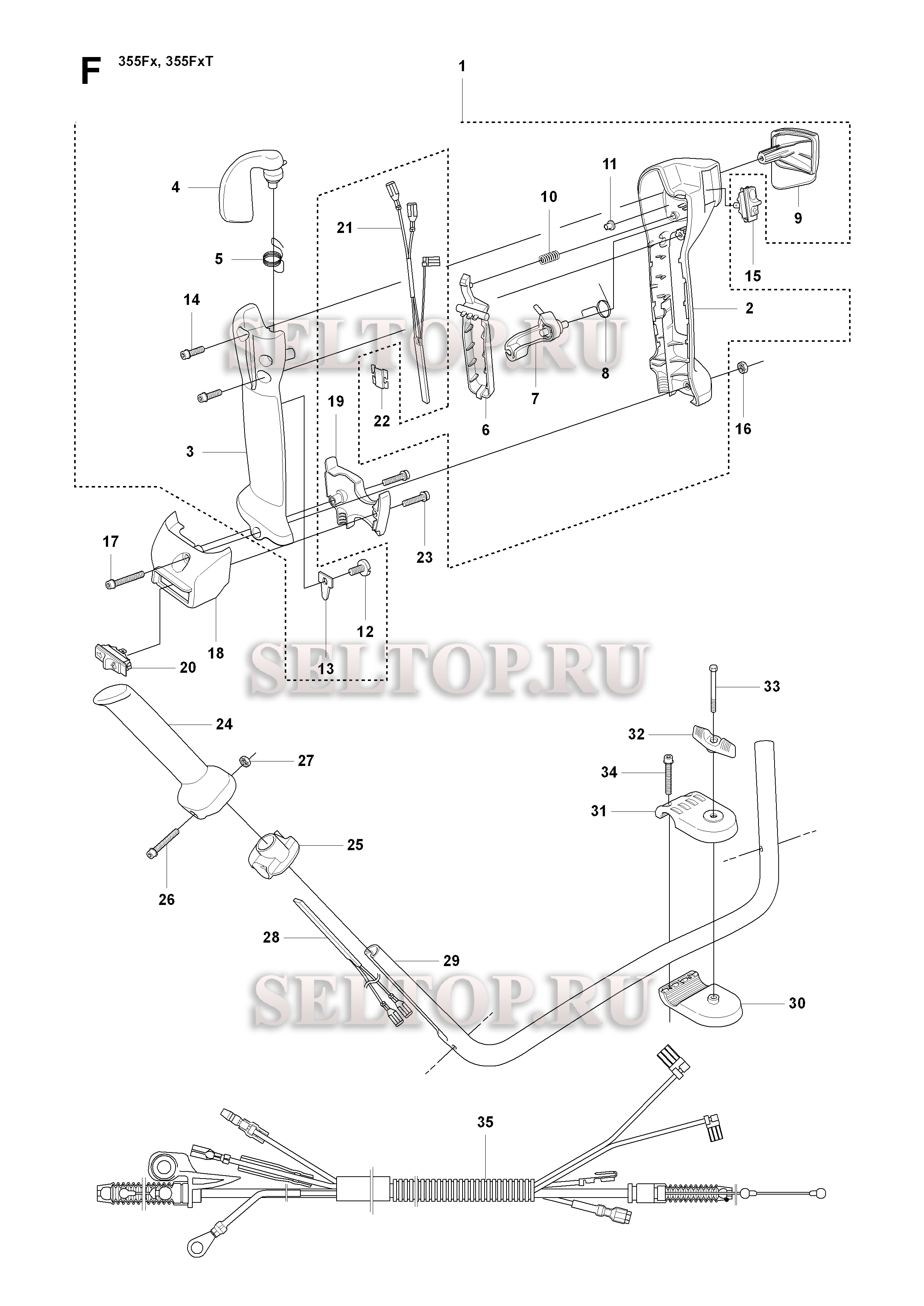 Управление дросселем для триммера Husqvarna 355 FX (c 2008-07), взрыв-схема: