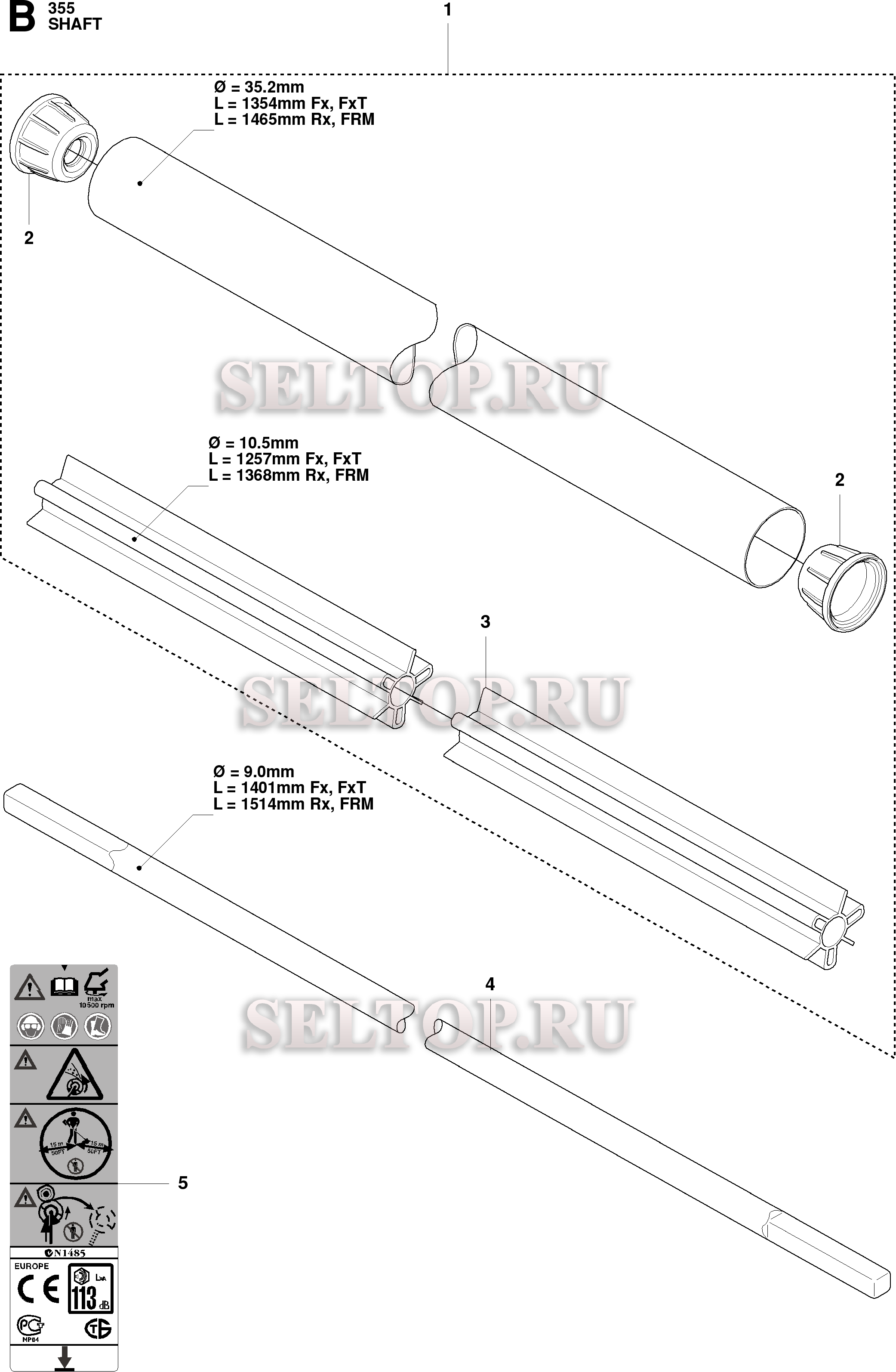 Ведущий вал для триммера Husqvarna 355 FX (c 2008-07), взрыв-схема:
