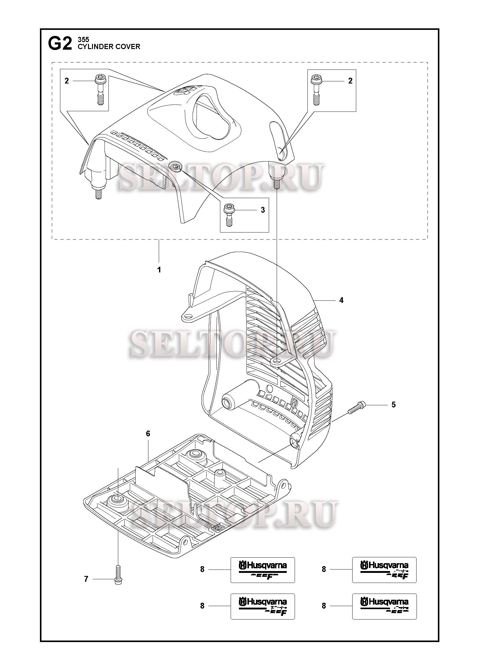 Крышка цилиндра (вариант 2) для триммера Husqvarna 355 FXT (c 2011-01), взрыв-схема: