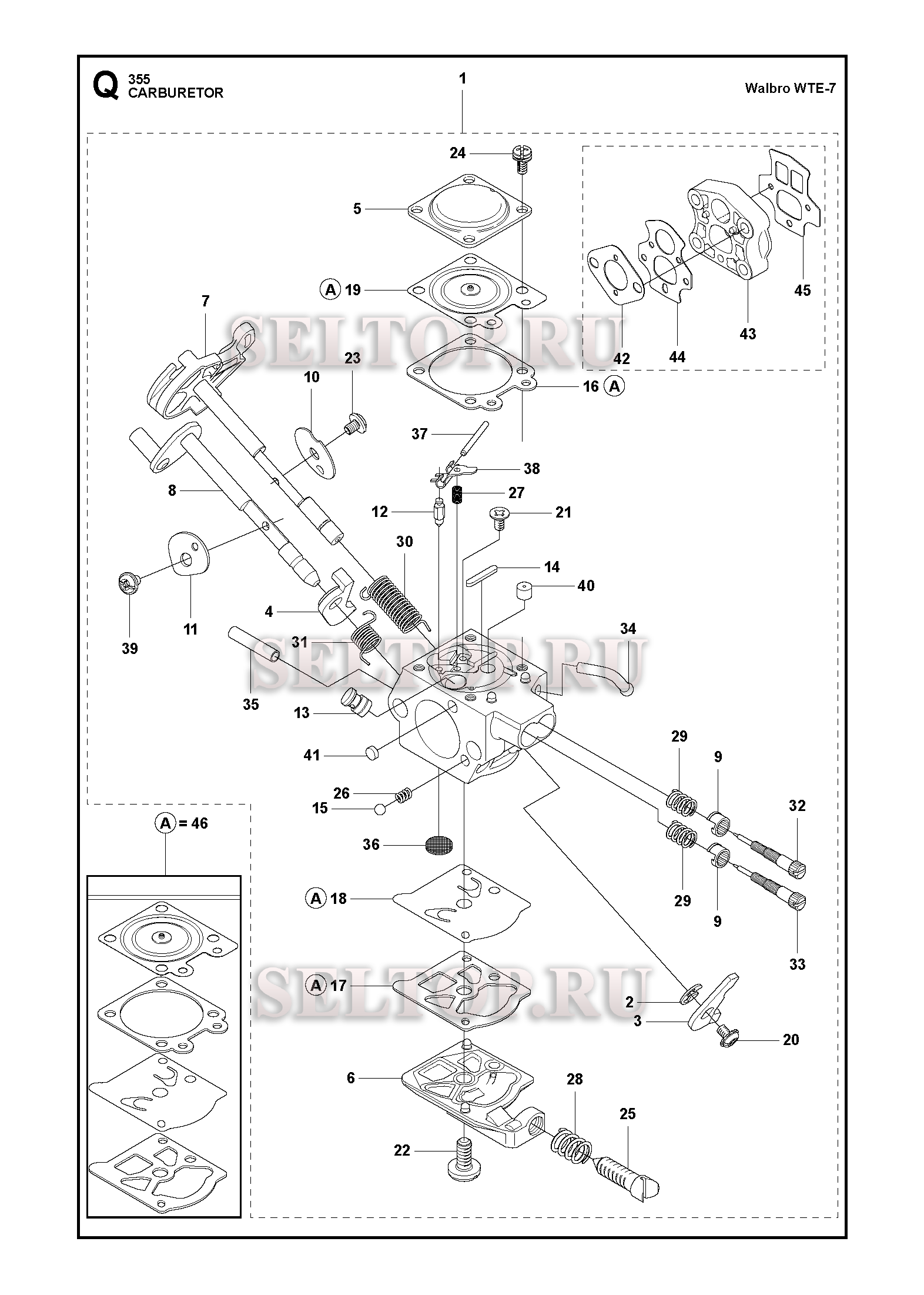 Карбюратор для триммера Husqvarna 355 RX (c 2014-12), взрыв-схема: