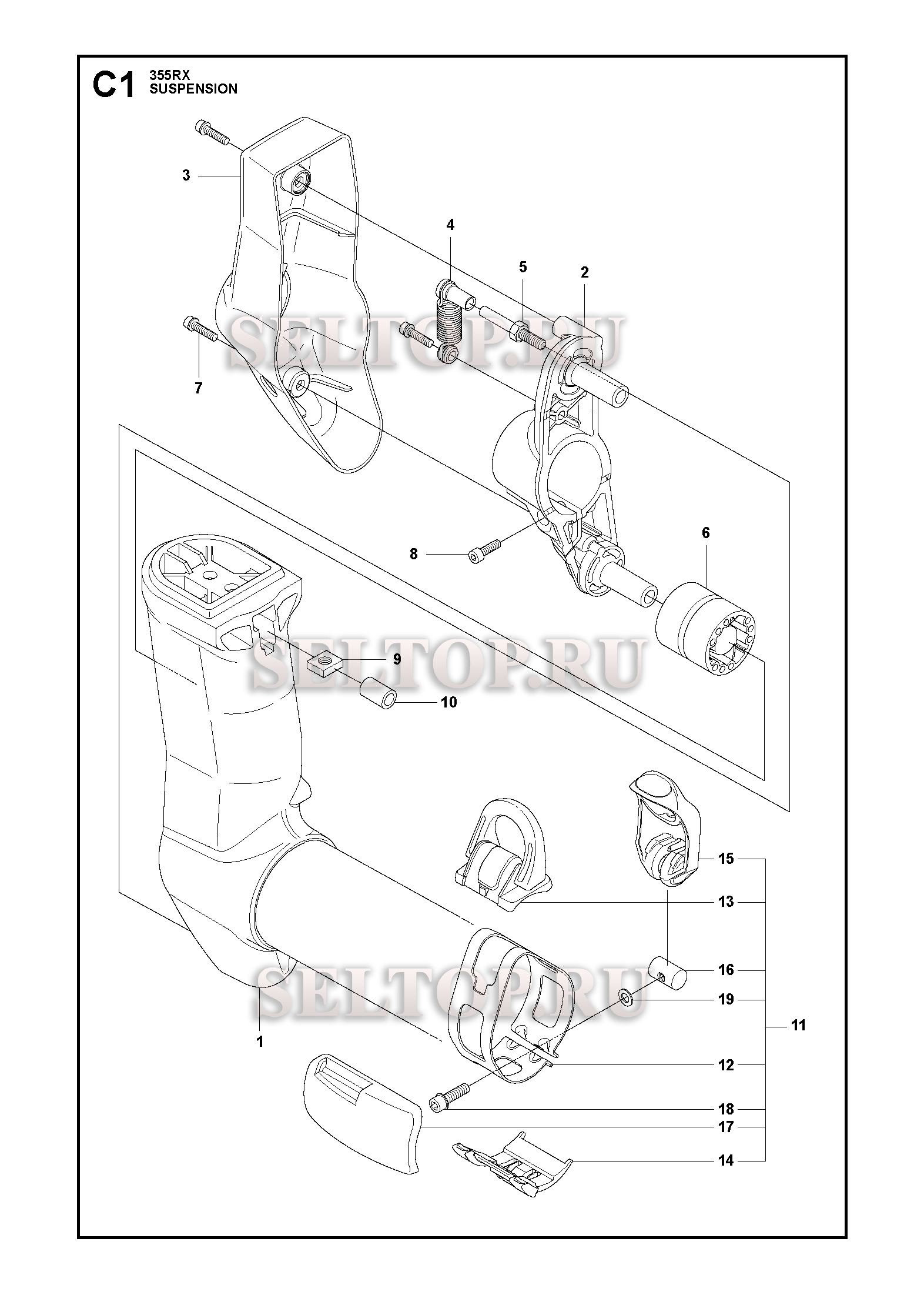 Кронштейн рукоятки в сборе для триммера Husqvarna 355 RX (c 2014-12), взрыв-схема: