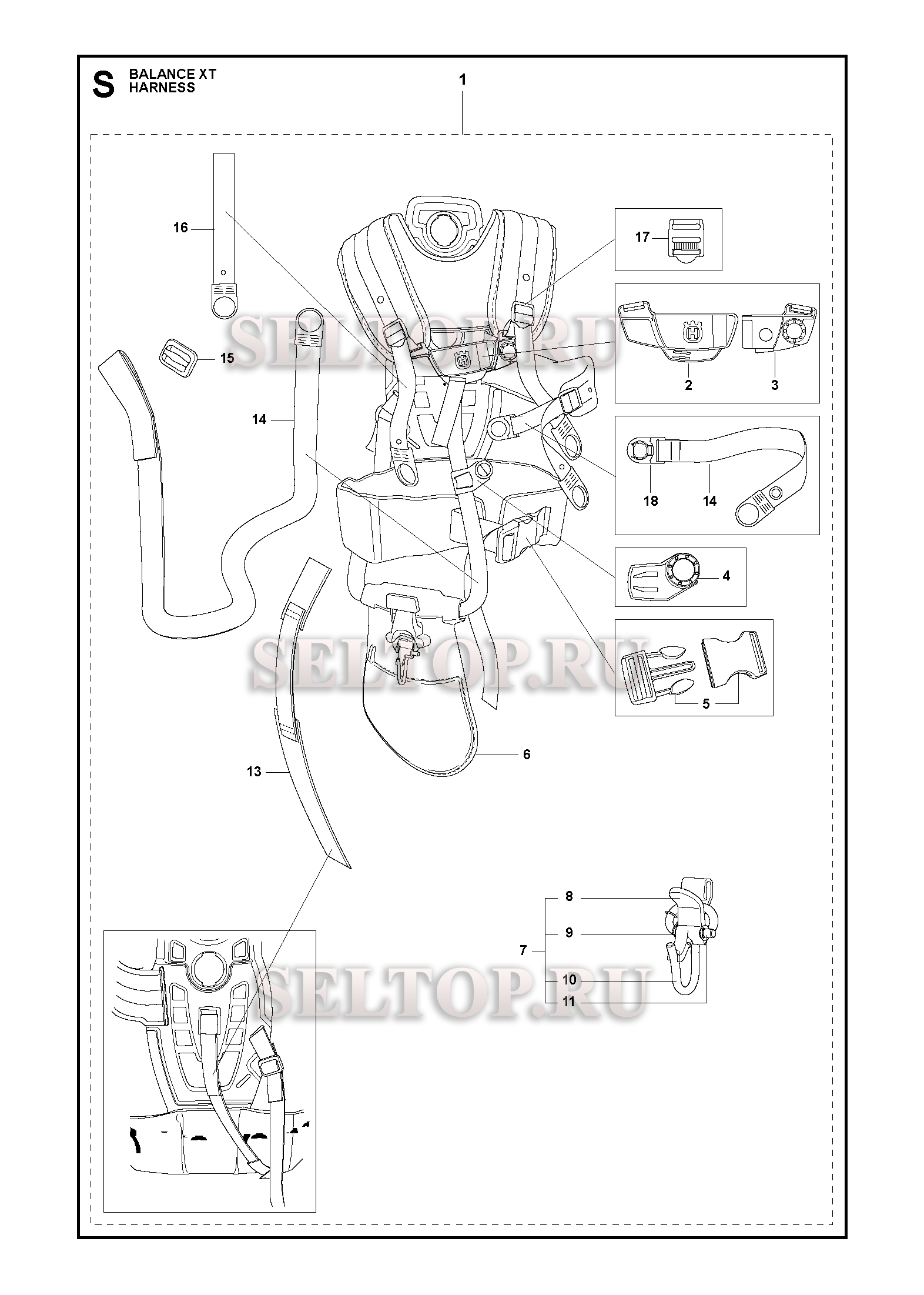 Подвесная система для триммера Husqvarna 355 RX (c 2014-12), взрыв-схема: