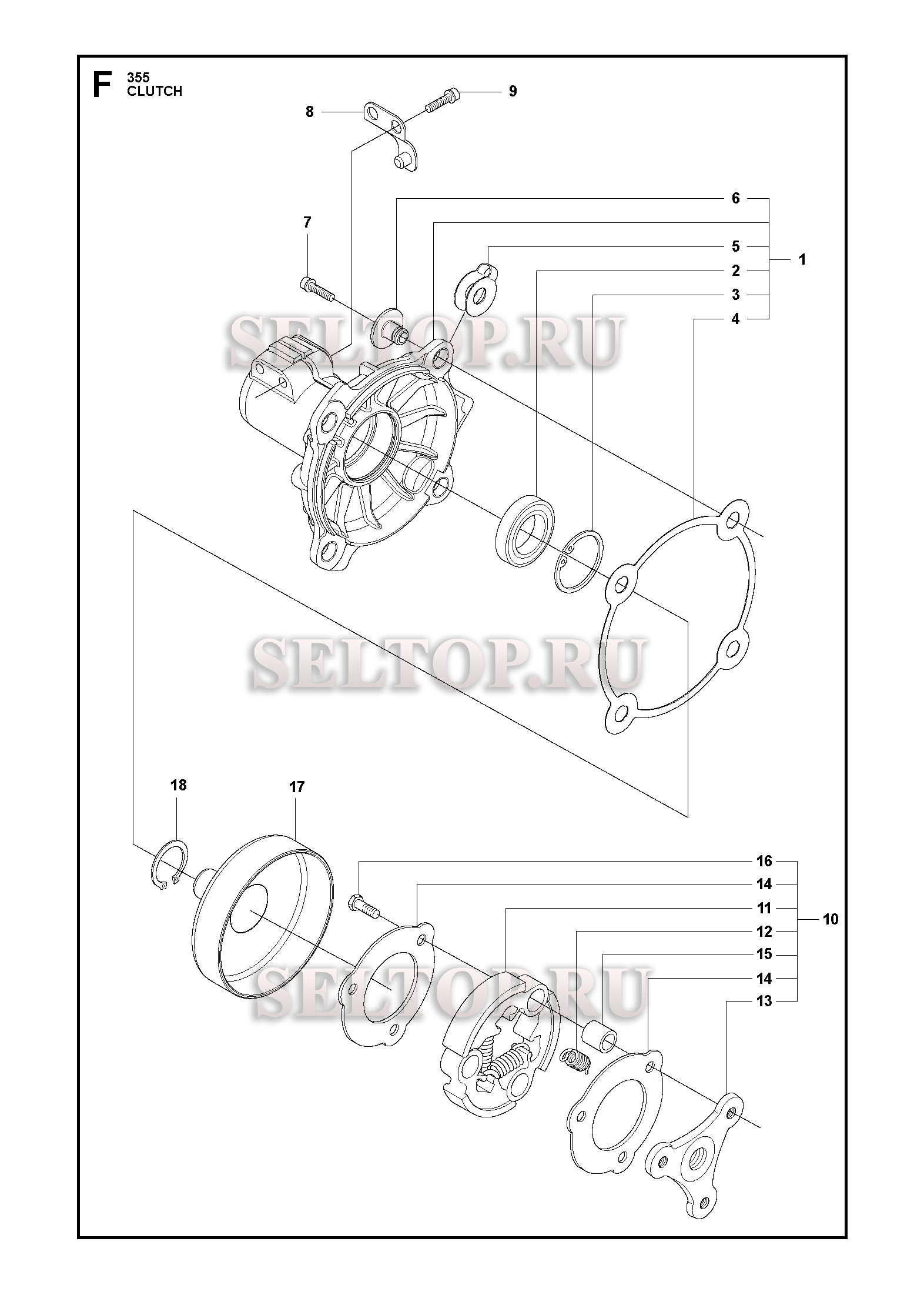 Сцепление для триммера Husqvarna 355 RX (c 2014-12), взрыв-схема: