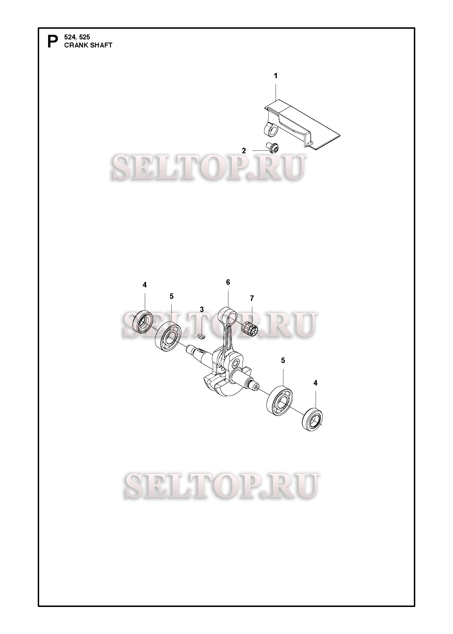 Коленвал для триммера Husqvarna 524 L, взрыв-схема: