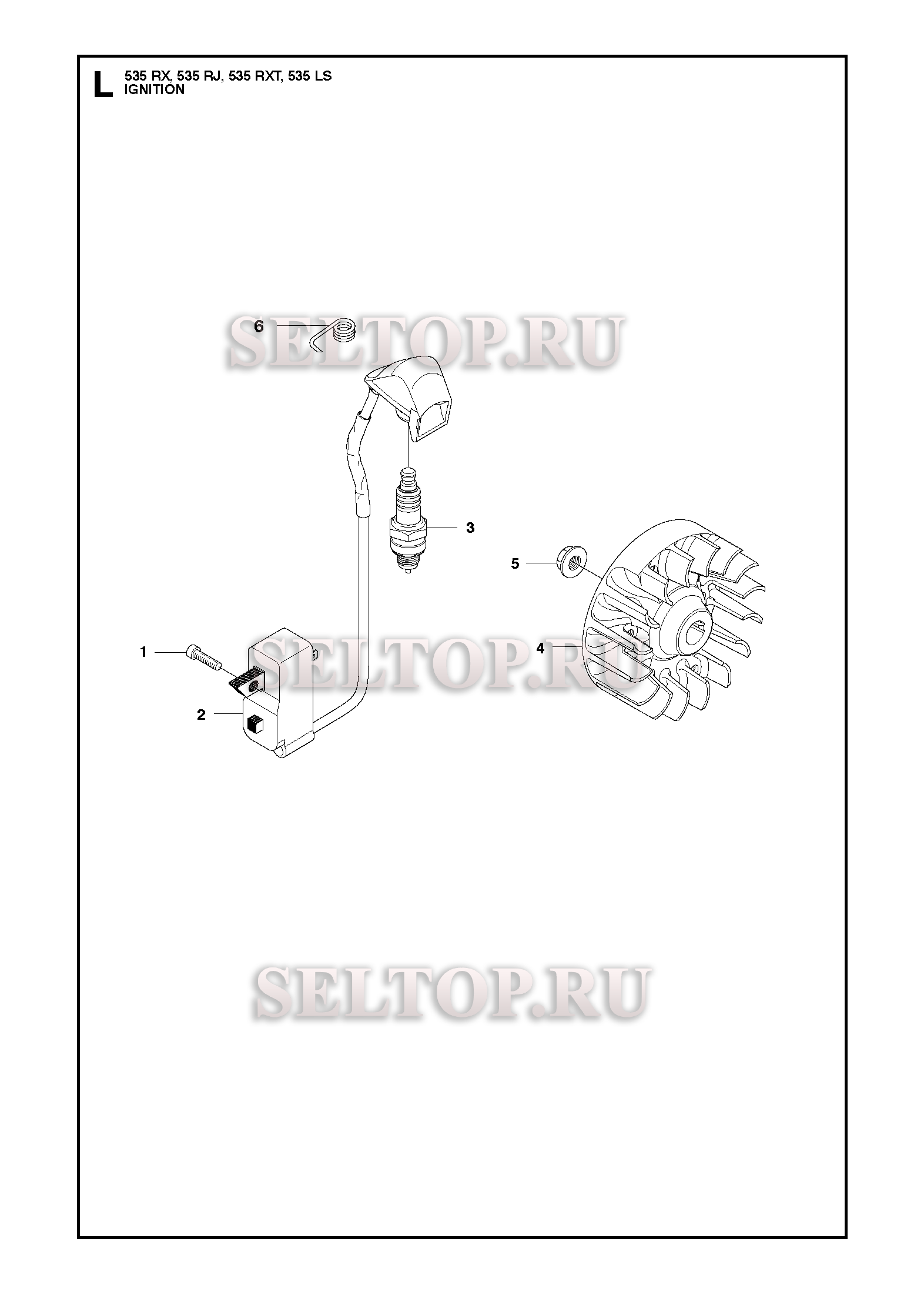 Зажигание для триммера Husqvarna 535 LS, взрыв-схема: