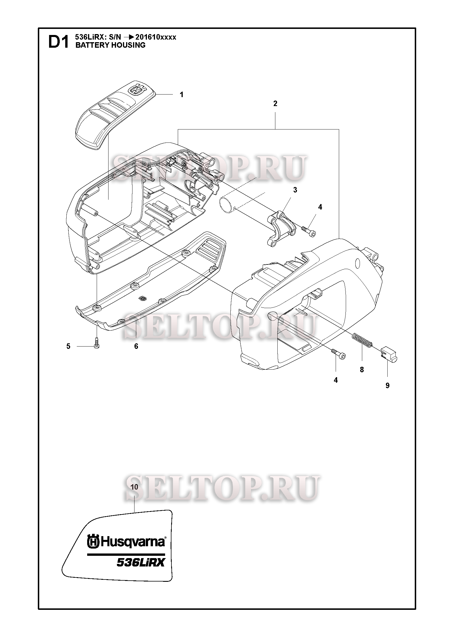 Корпус (вариант 2) для триммера Husqvarna 536 LiRX, взрыв-схема: