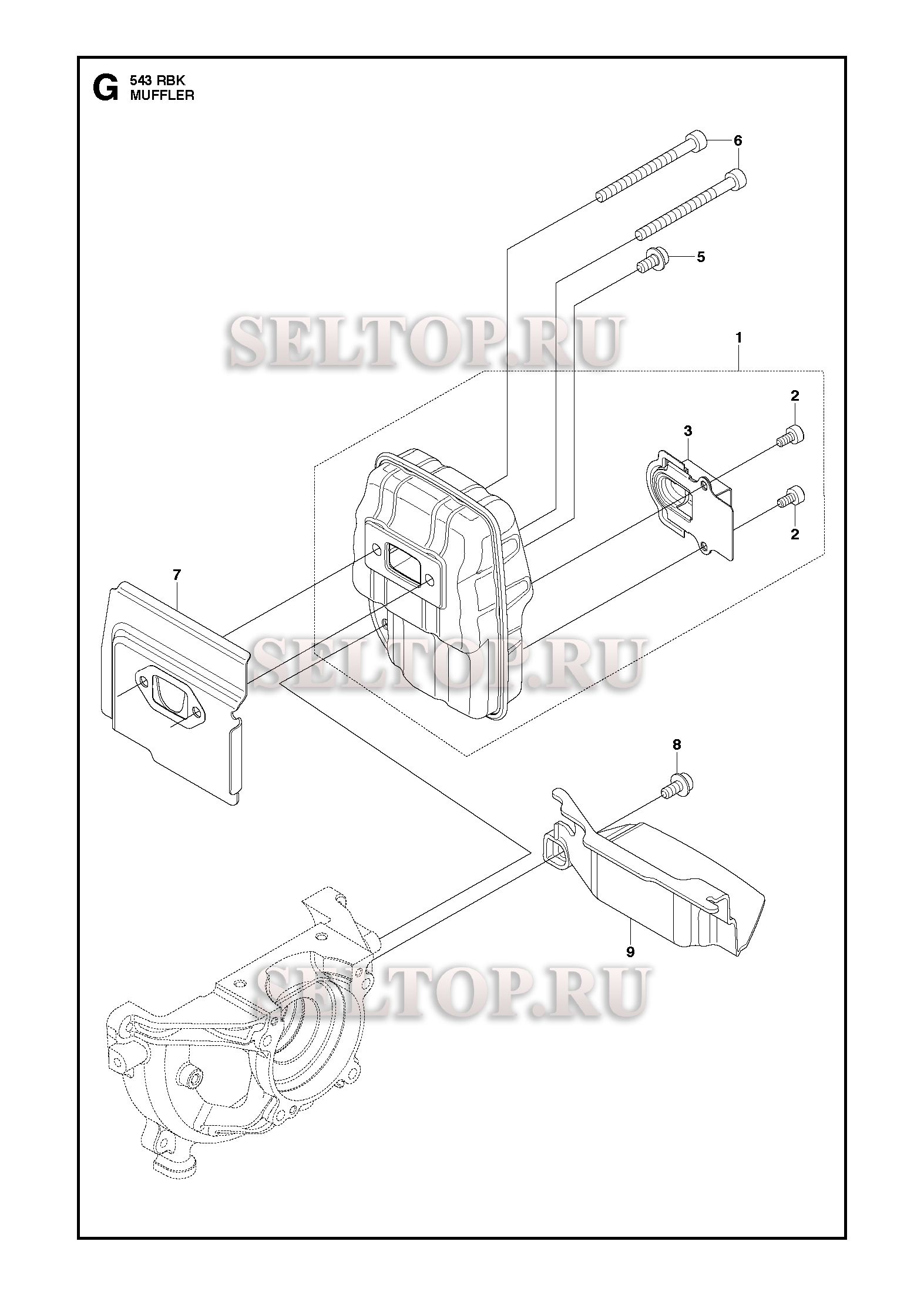 Глушитель для триммера Husqvarna 543 RBK (c 2013-02), взрыв-схема: