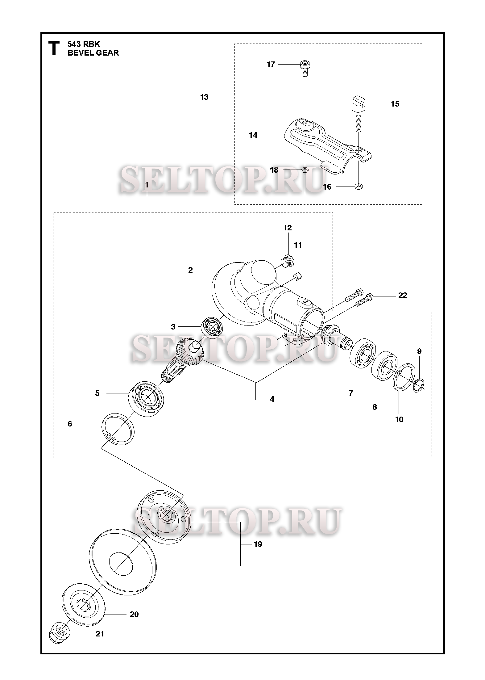 Редуктор для триммера Husqvarna 543 RBK (c 2013-02), взрыв-схема: