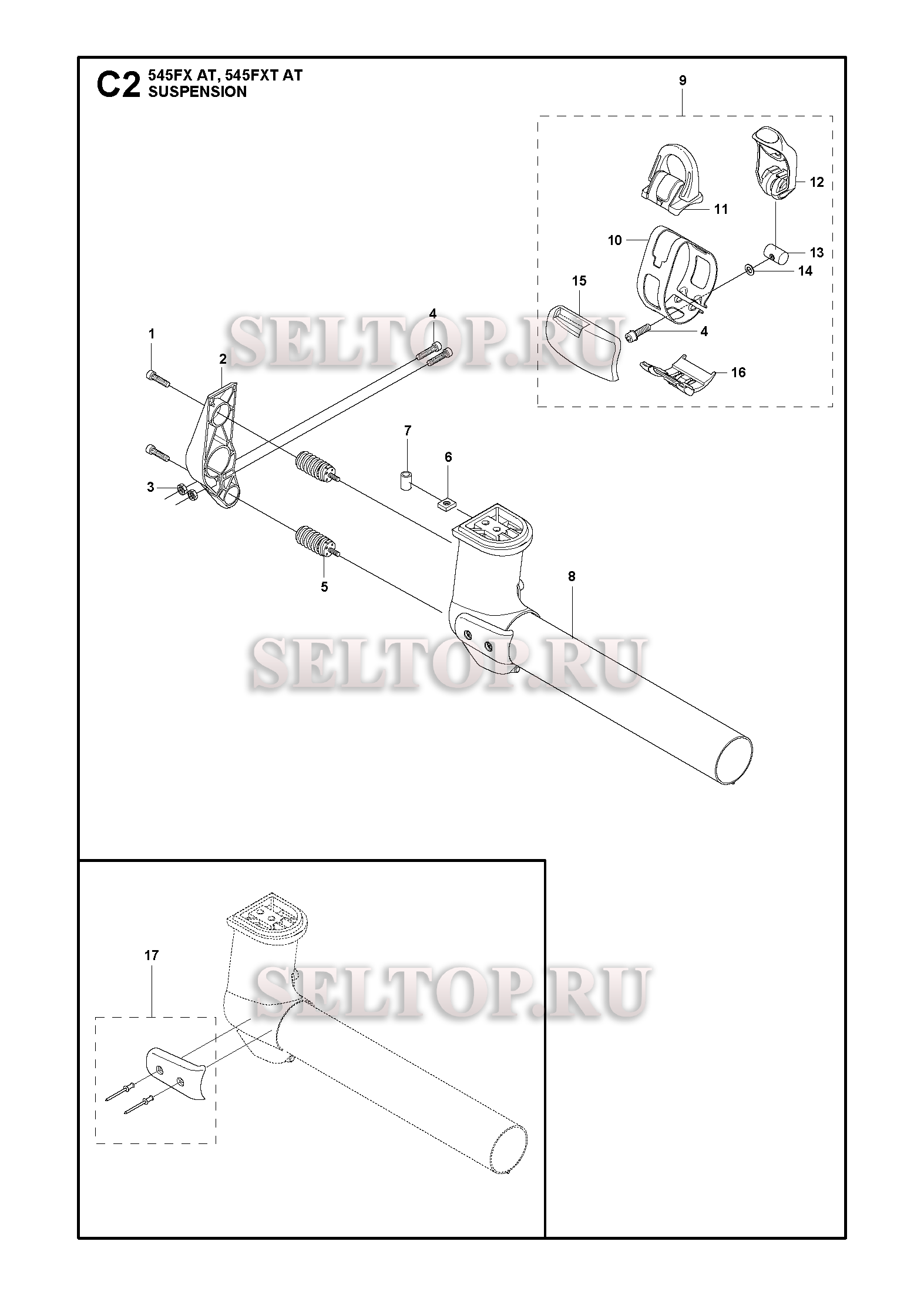Кронштейн рукоятки в сборе для триммера Husqvarna 545 FXAT (c 2017-12), взрыв-схема: