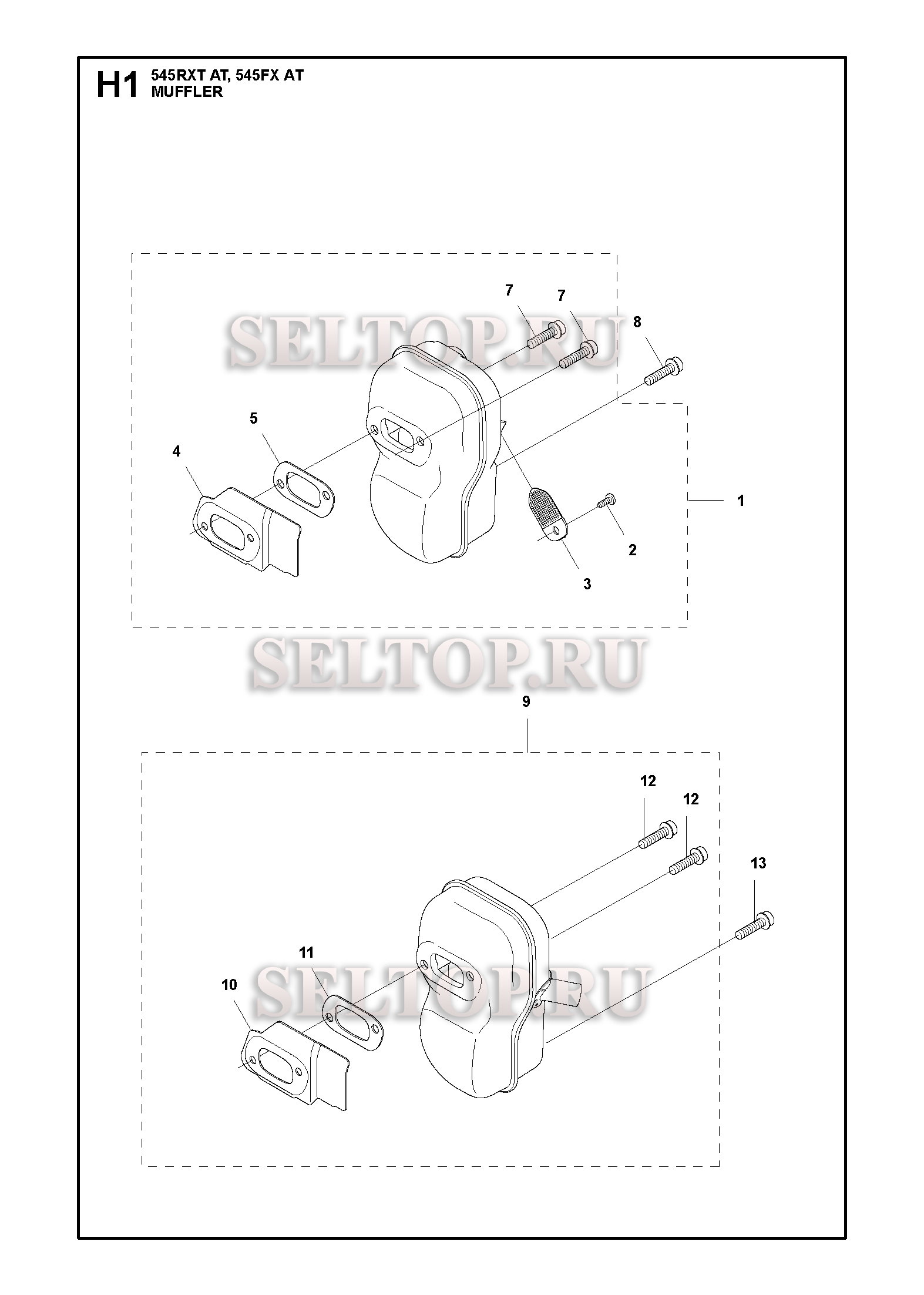 Глушитель для триммера Husqvarna 545 RXTAT (c 2017-12), взрыв-схема:
