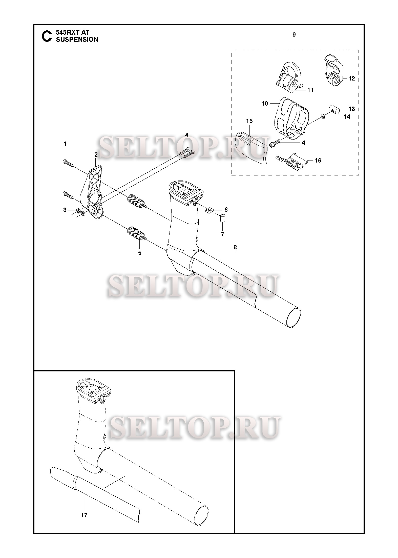 Кронштейн рукоятки в сборе для триммера Husqvarna 545 RXTAT (c 2017-12), взрыв-схема: