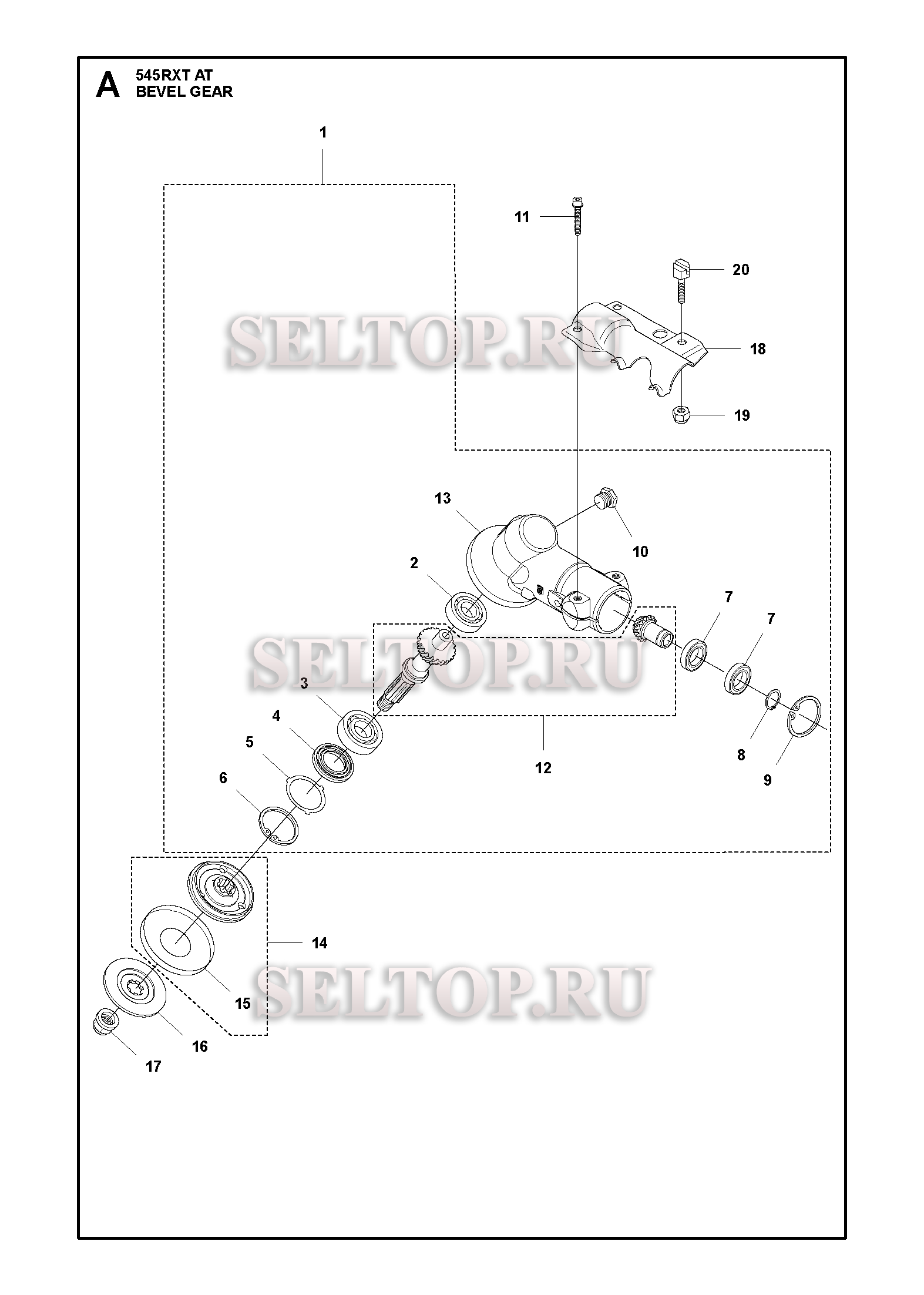 Редуктор для триммера Husqvarna 545 RXTAT (c 2017-12), взрыв-схема: