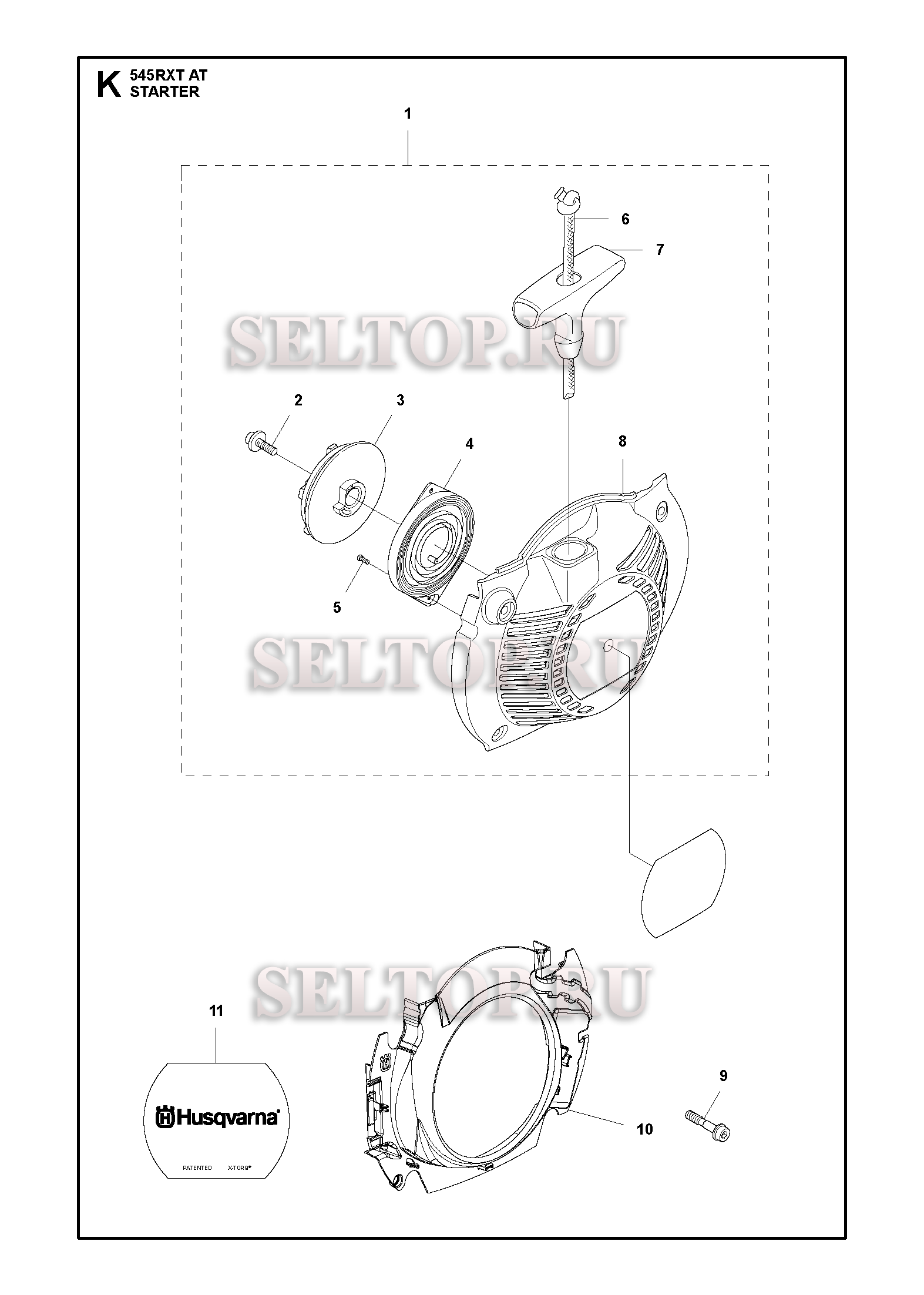 Стартер для триммера Husqvarna 545 RXTAT (c 2017-12), взрыв-схема: