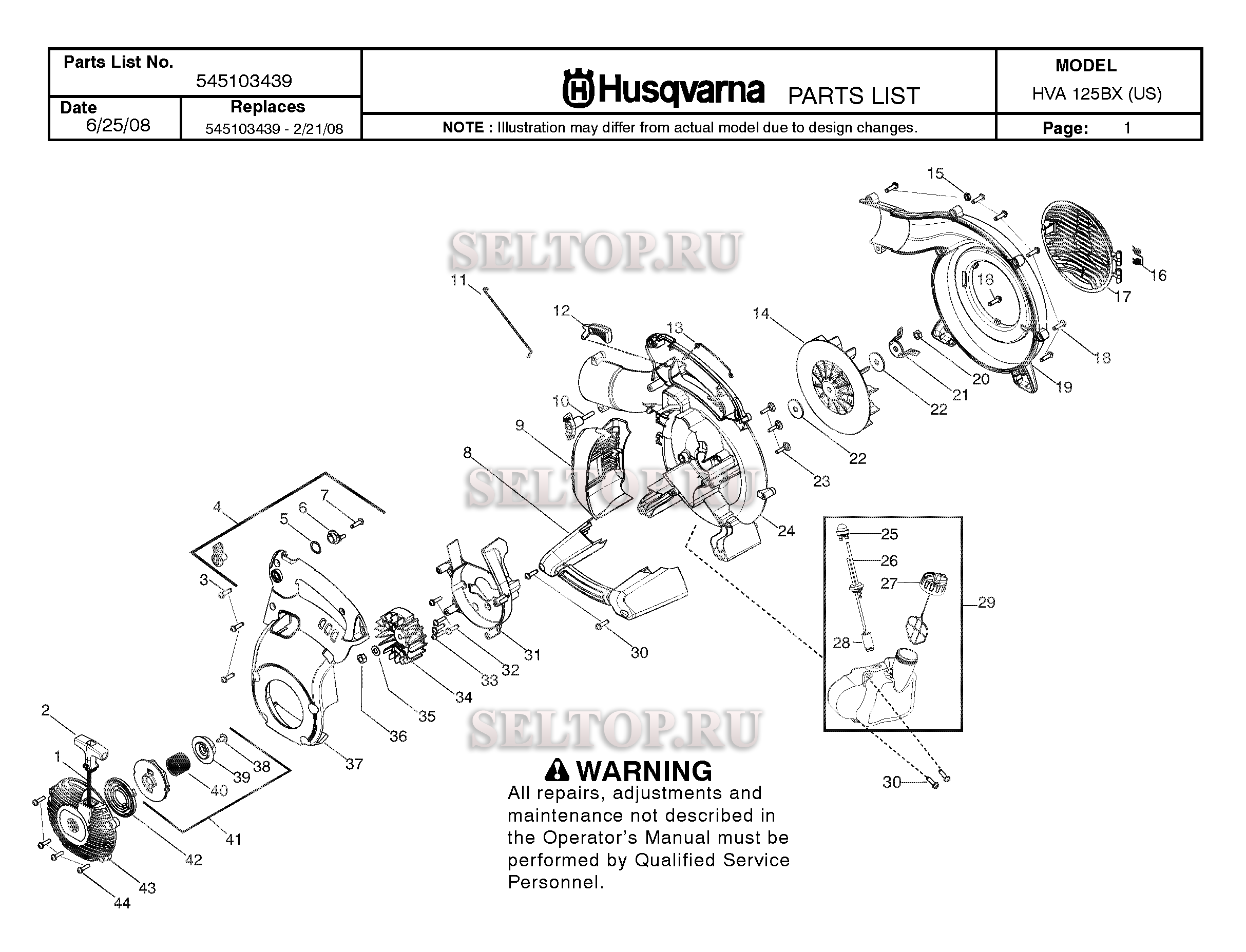 Все запчасти для воздуходувки Husqvarna 125 BX (с 2008-06), взрыв-схема: