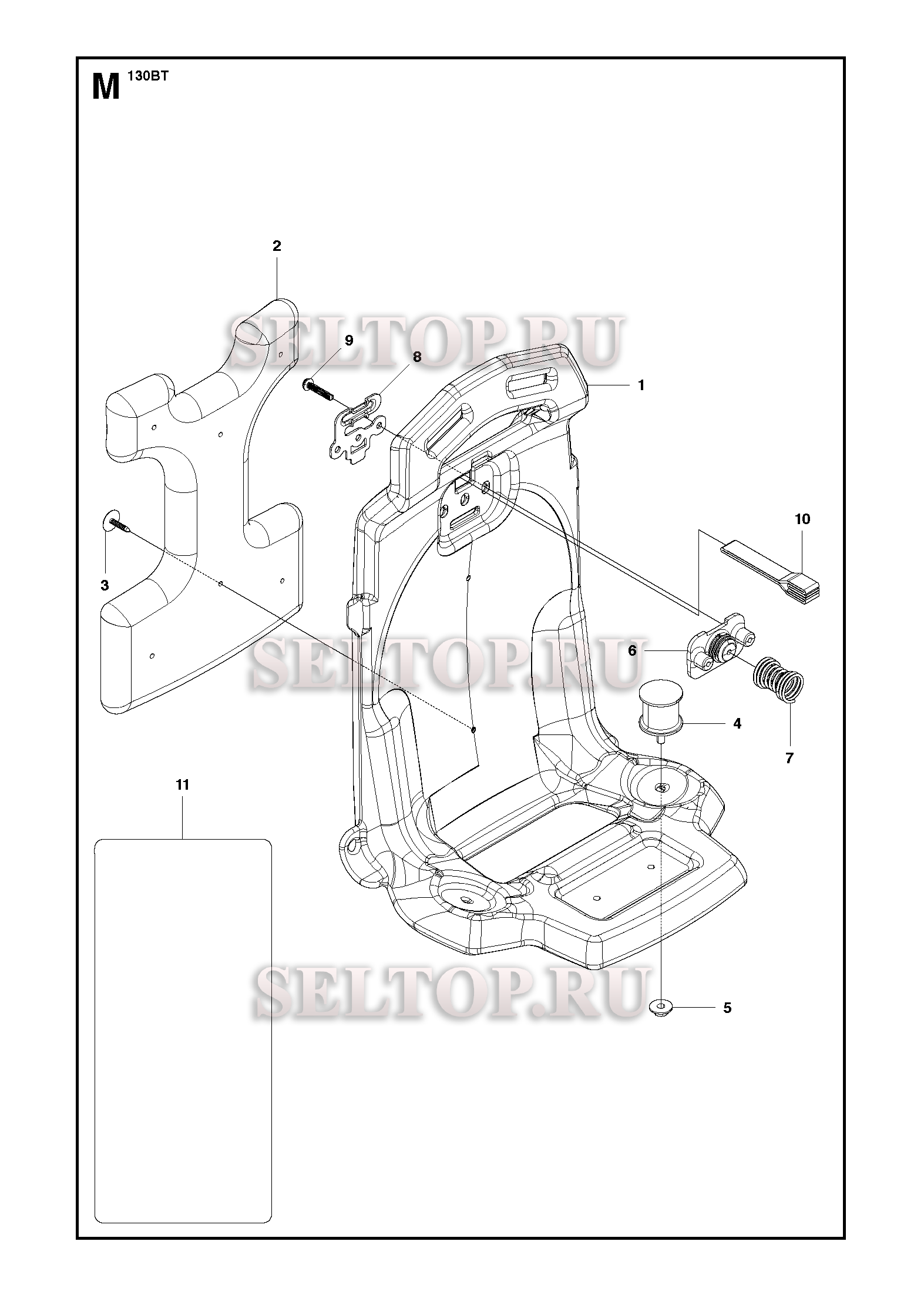 Каркас для воздуходувки Husqvarna 130 BT (с 2008-10), взрыв-схема:
