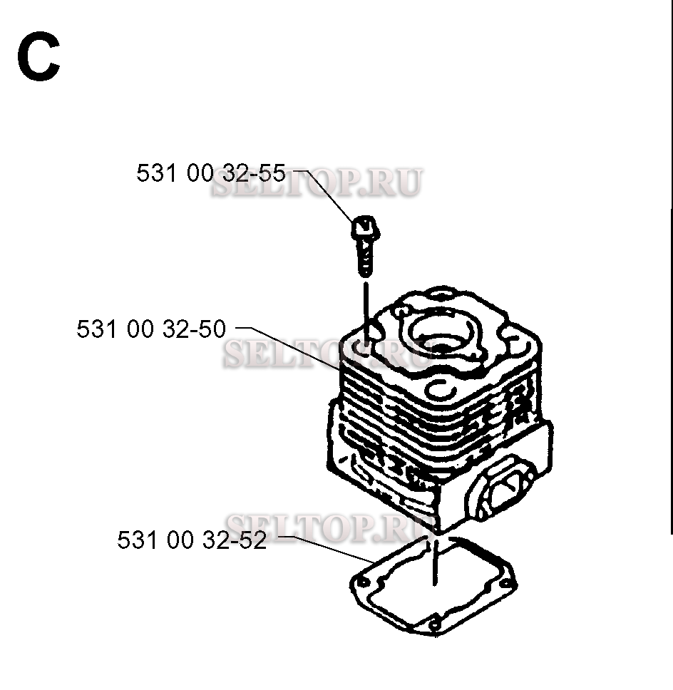 Цилиндр для воздуходувки Husqvarna 140 B (с 1996-03), взрыв-схема: