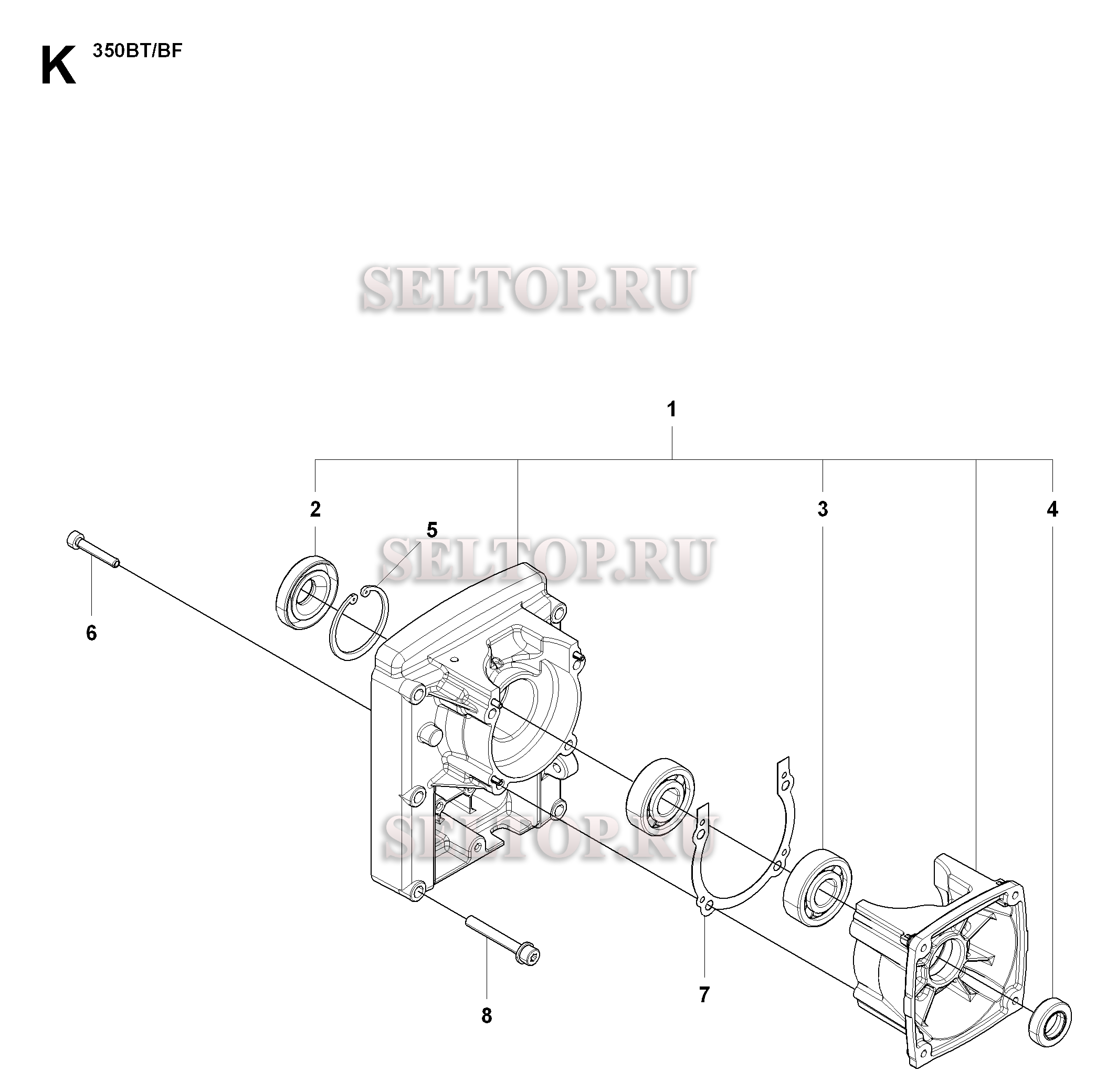 Поршень, коленвал для воздуходувки Husqvarna 350 BT (с 2009-03), взрыв-схема: