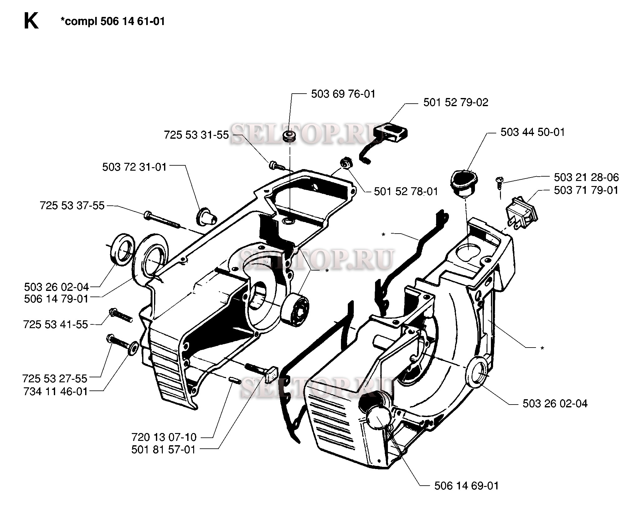 Картер для бензореза Husqvarna 272K (с 1997-01), взрыв-схема: