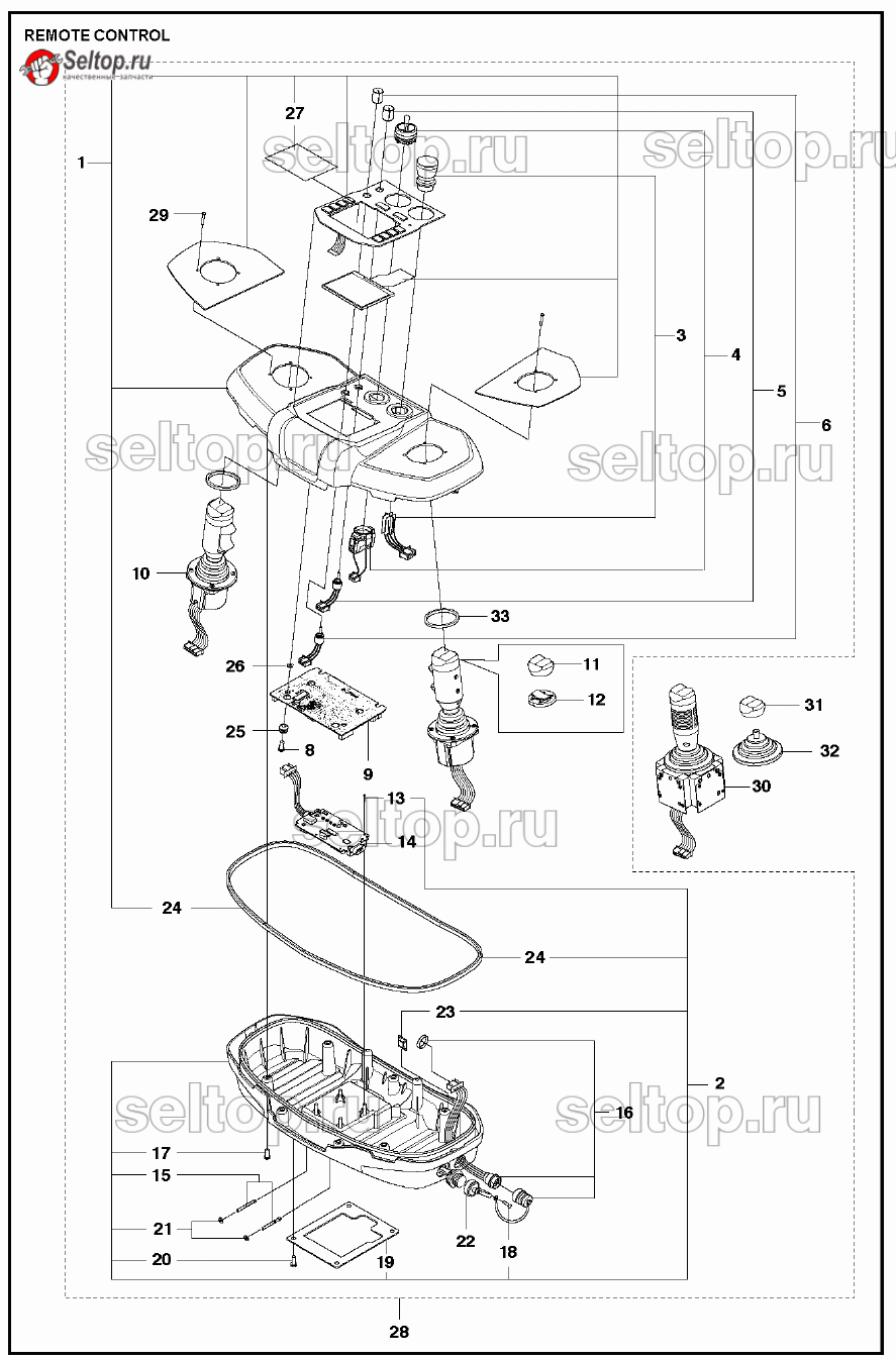 Дистанционное управление для демонтажного робота DXR 300 (2008-2013) Husqvarna, взрыв-схема: