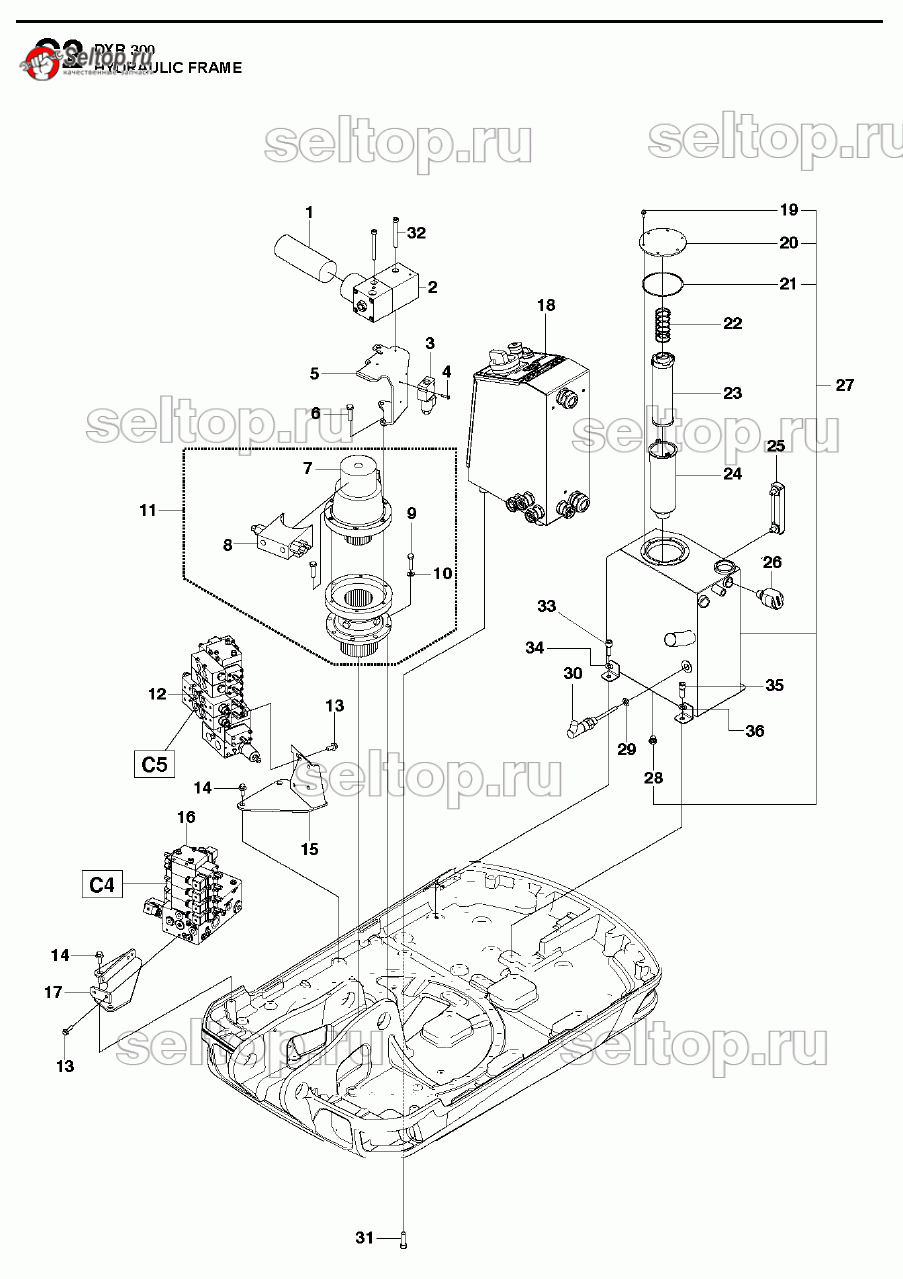 Гидравлическая рама для демонтажного робота DXR 300 (2008-2013) Husqvarna, взрыв-схема: