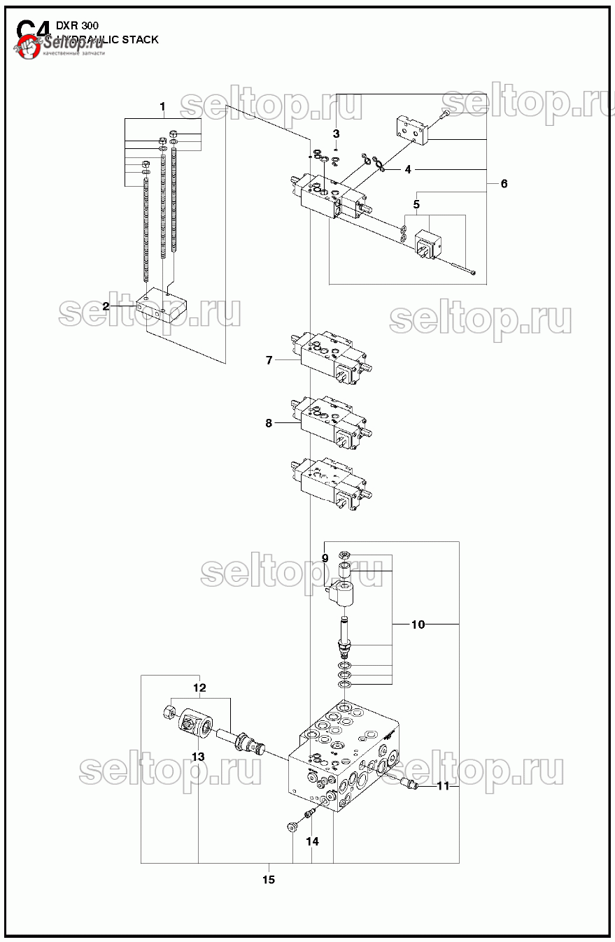 Гидравлический штабель (вариант 1) для демонтажного робота DXR 300 (2008-2013) Husqvarna, взрыв-схема: