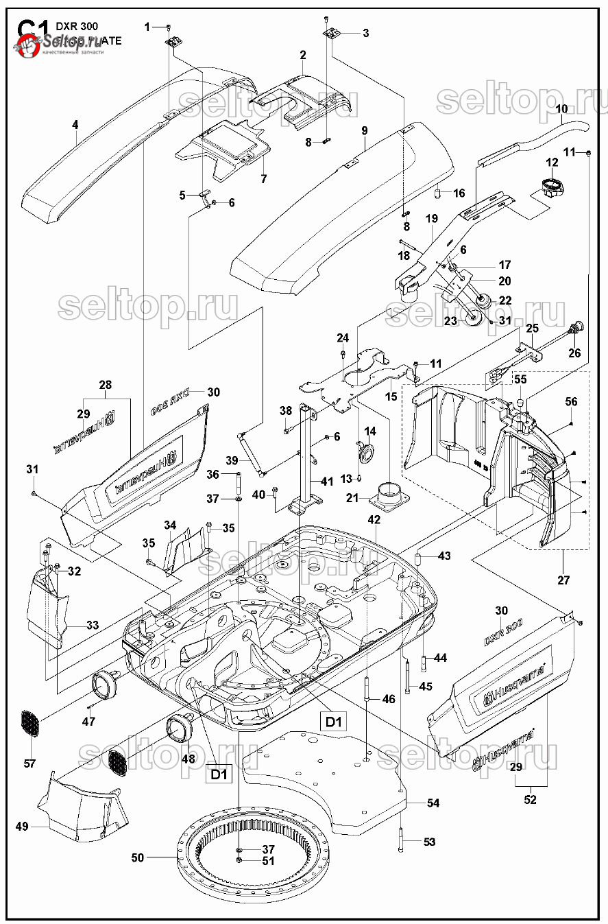 Опорная плита для демонтажного робота DXR 300 (2008-2013) Husqvarna, взрыв-схема: