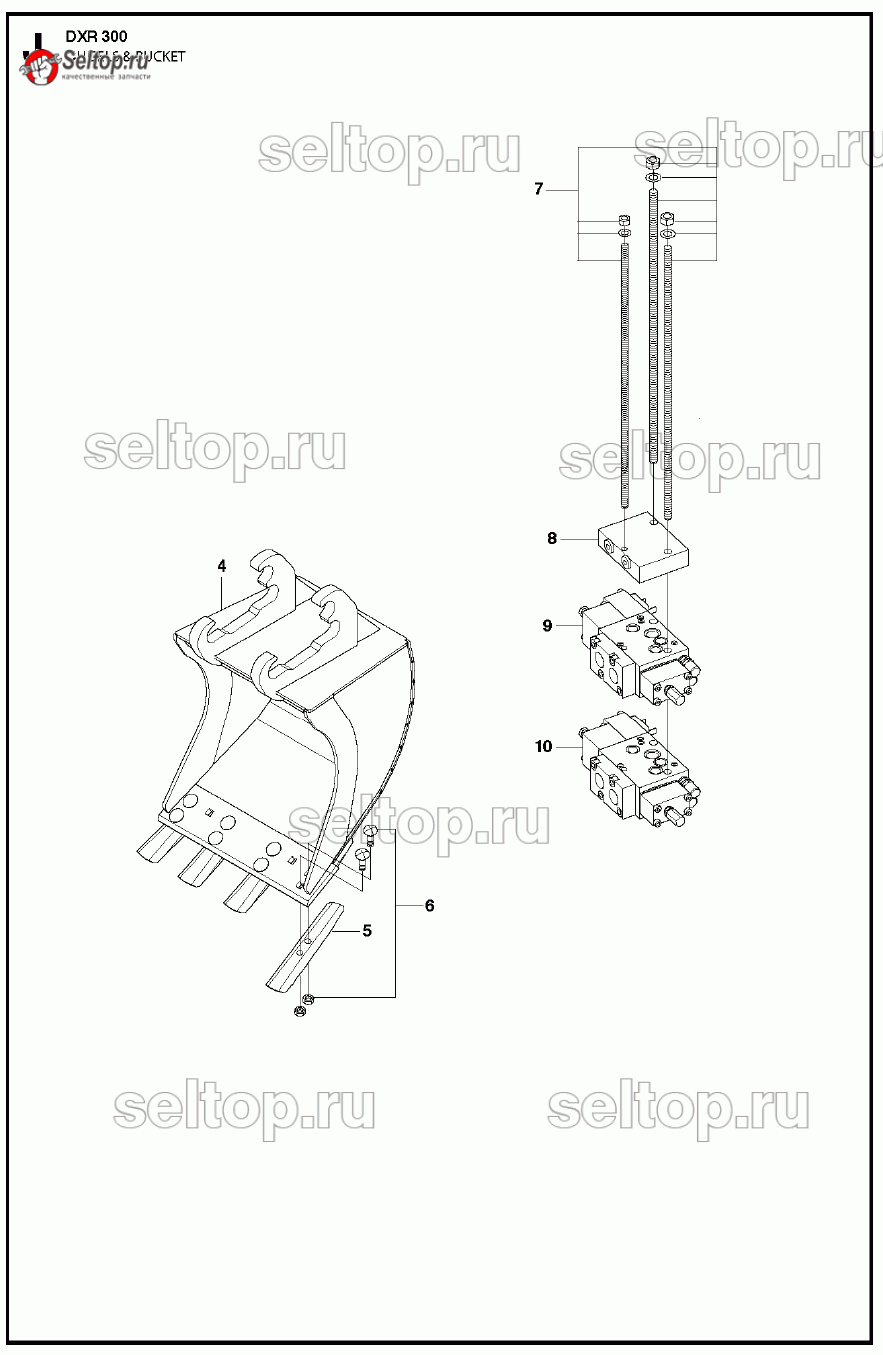 Резцы и ковш для демонтажного робота DXR 300 (2008-2013) Husqvarna, взрыв-схема: