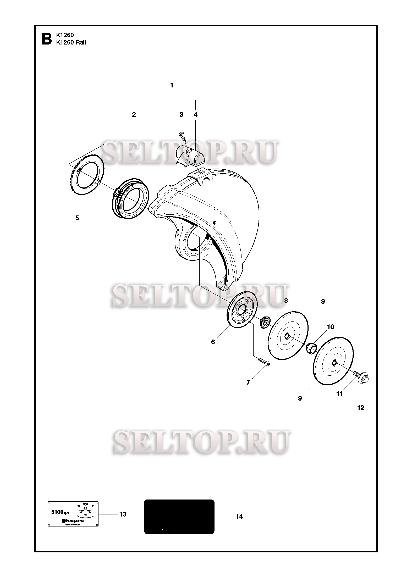 Колеса и шины для резчика Husqvarna K1260 Rail (с 2010-10), взрыв-схема: