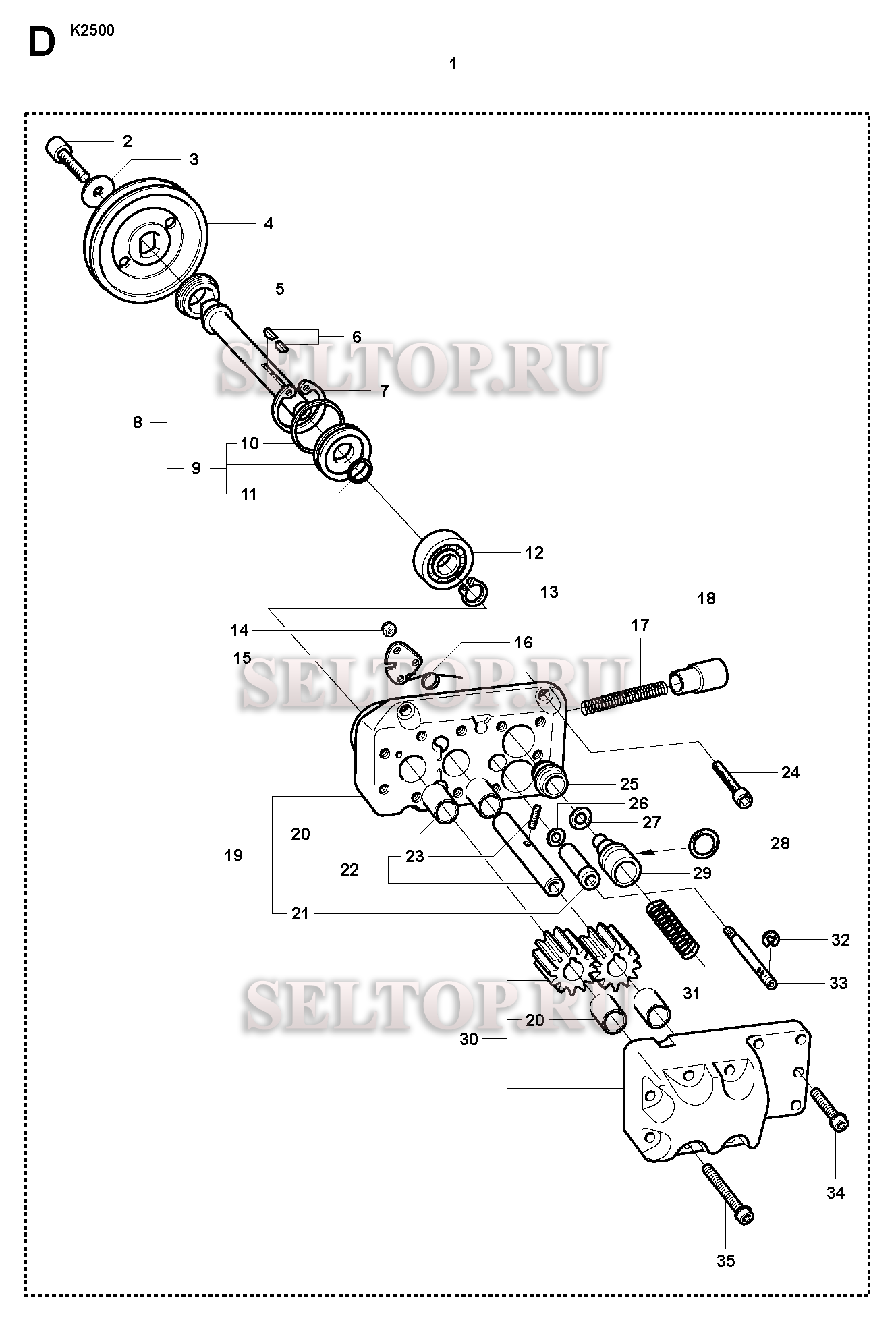 Гидравлический насос-мотор для резчика Husqvarna K2500 (с 2007-01), взрыв-схема: