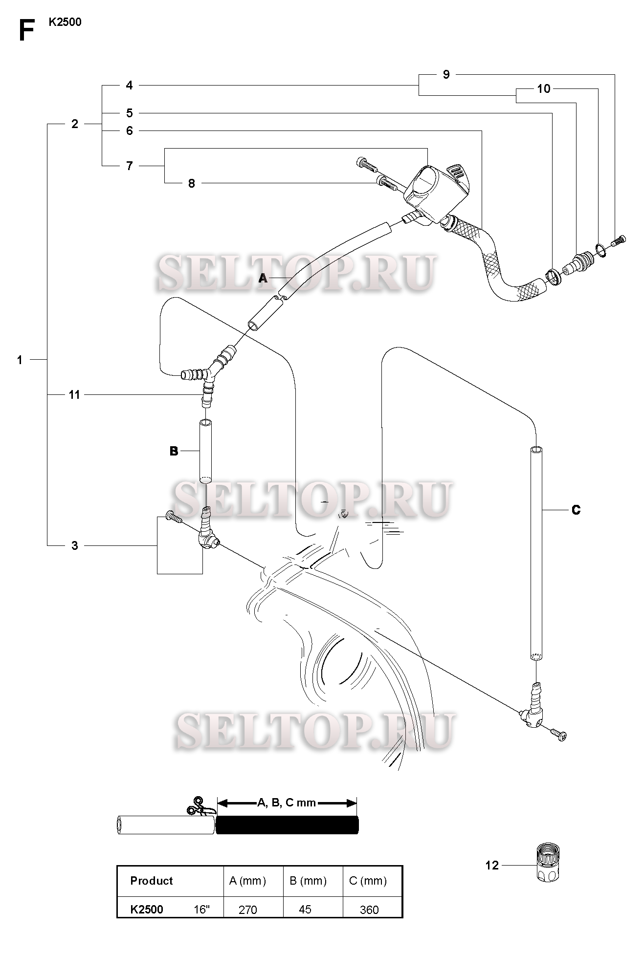 Комплект водяных шлангов для резчика Husqvarna K2500 (с 2007-01), взрыв-схема: