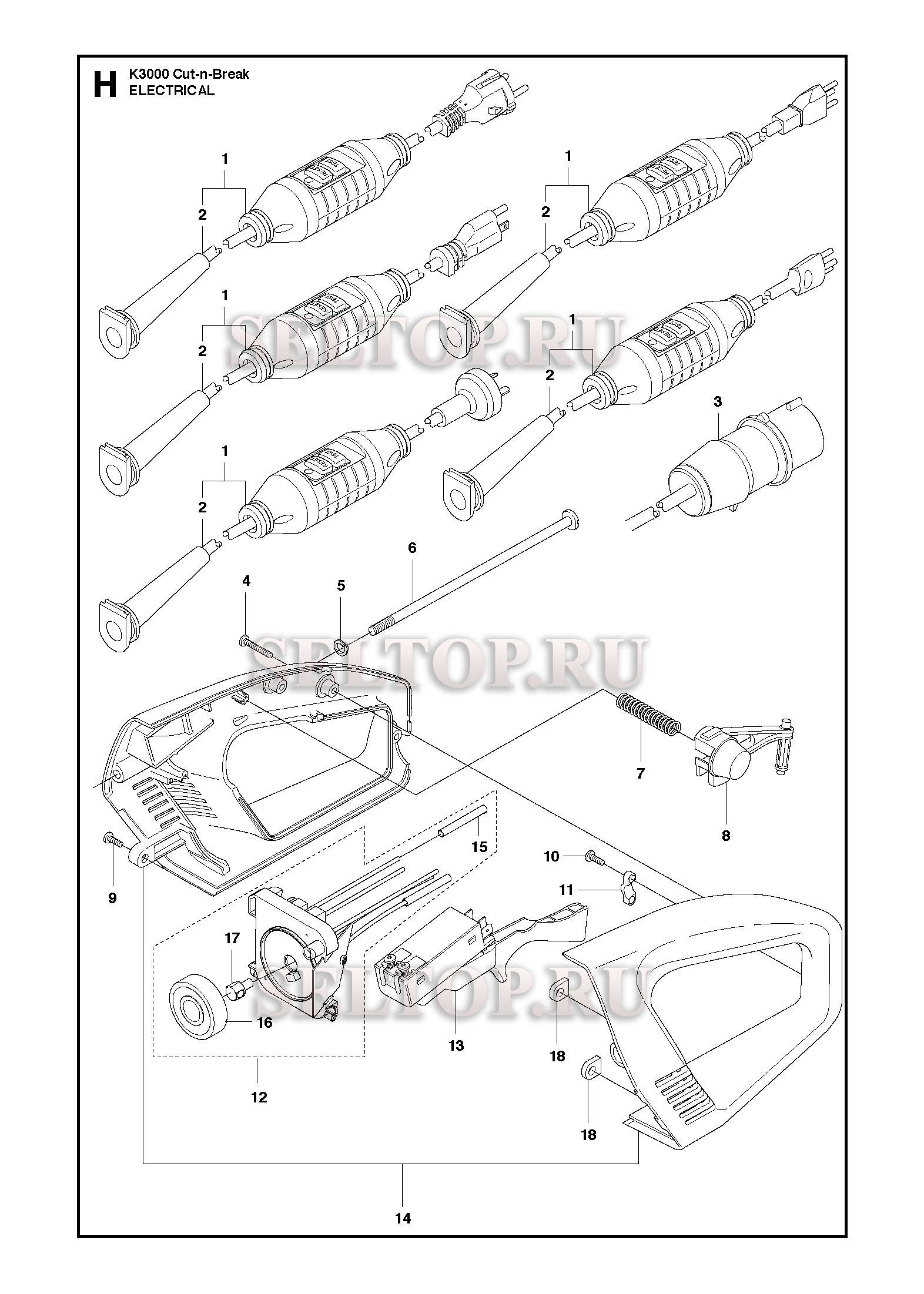 Электрические детали для резчика Husqvarna K3000 Cut-n-Break (с 2013-06), взрыв-схема: